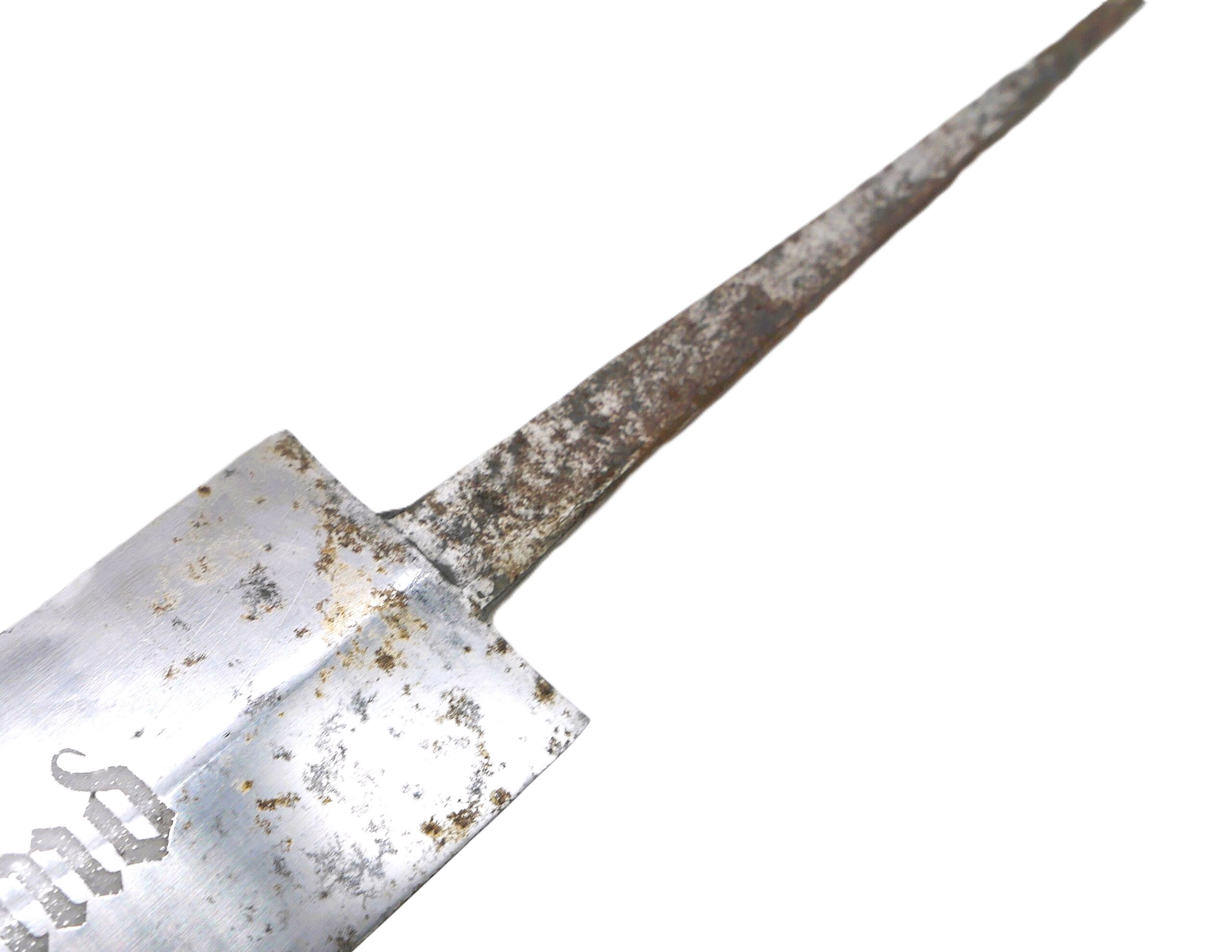 Klinge für den SA/NSKK Dolch. Hersteller M7/36 (E. & F. Hörster, Solingen). Klinge hat Gebrauchsspuren und Flecken, etc. Schwärze der Devise fast vergangen, aber klar erkennbar. Zum Aufarbeiten.