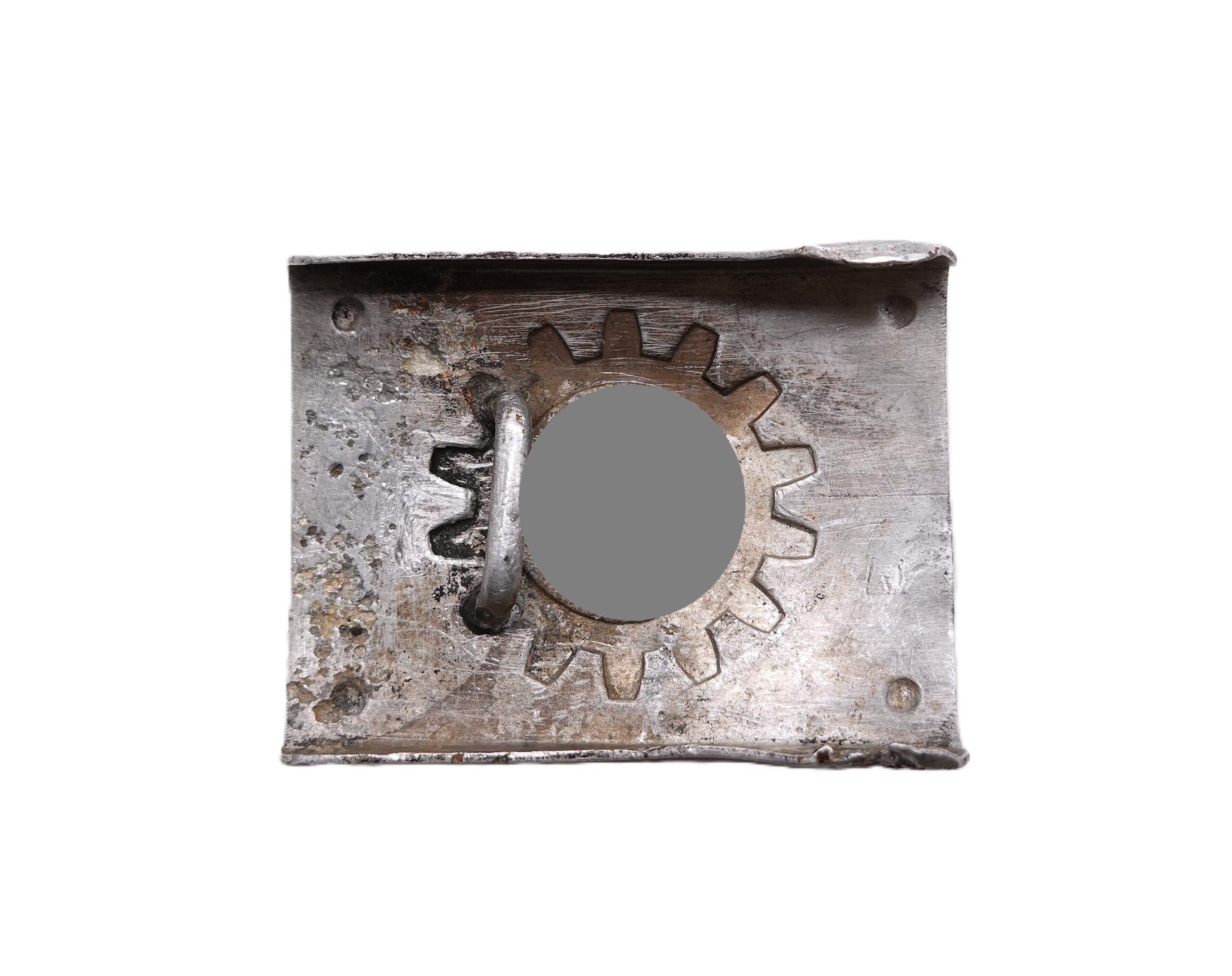 Koppelschloss – DAF (Deutsche Arbeitsfront) Aluminium durchgeprägt. Ohne Hersteller. Zweidorn fehlt. Bodenfund.
