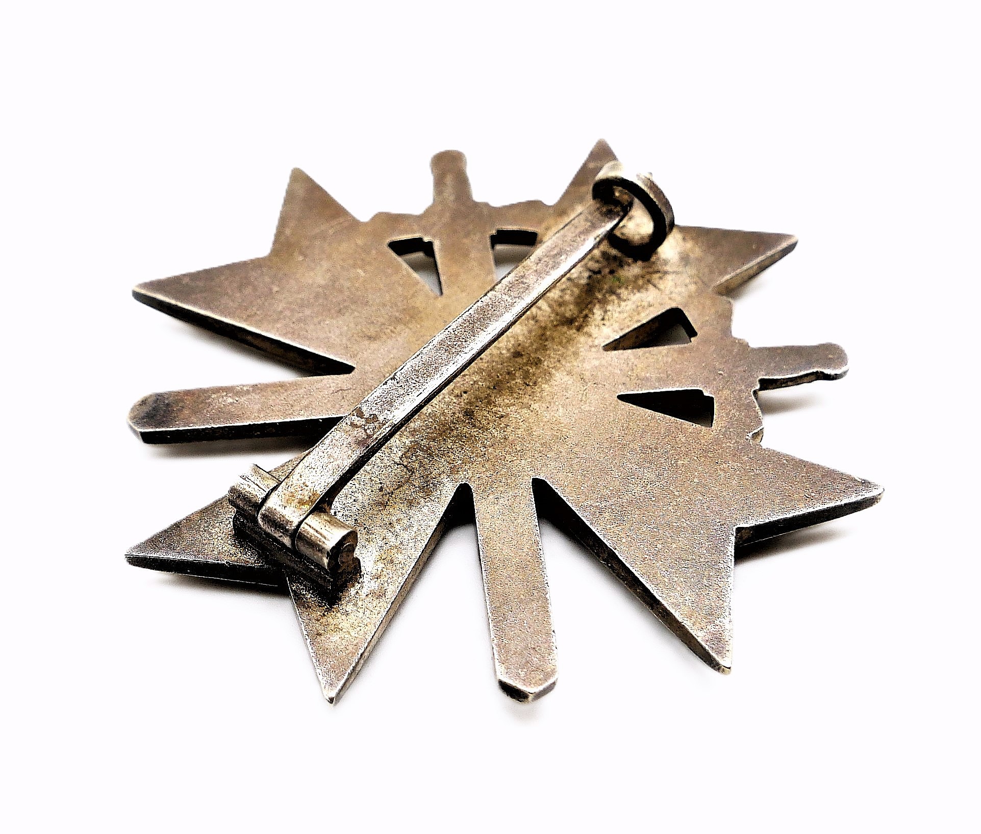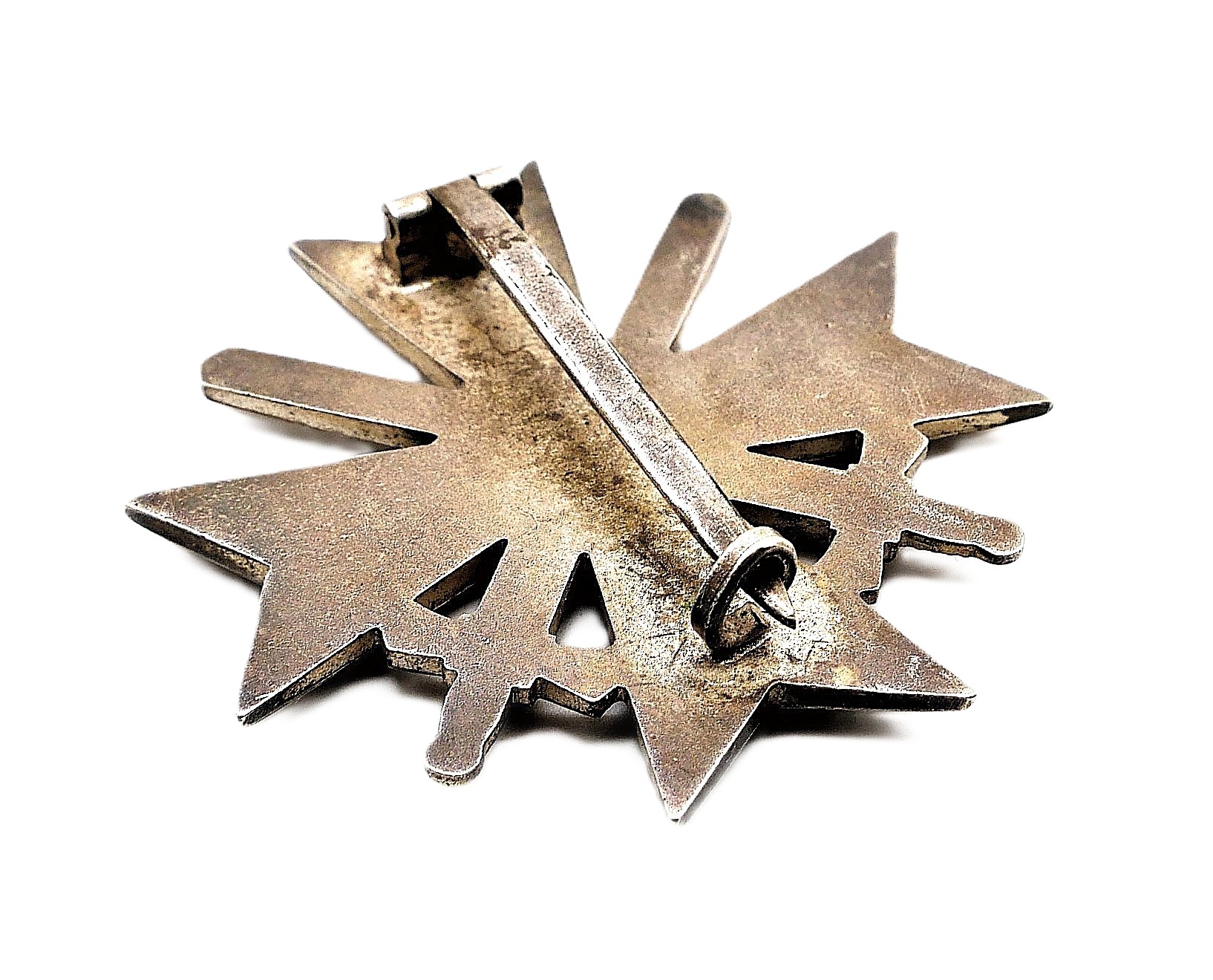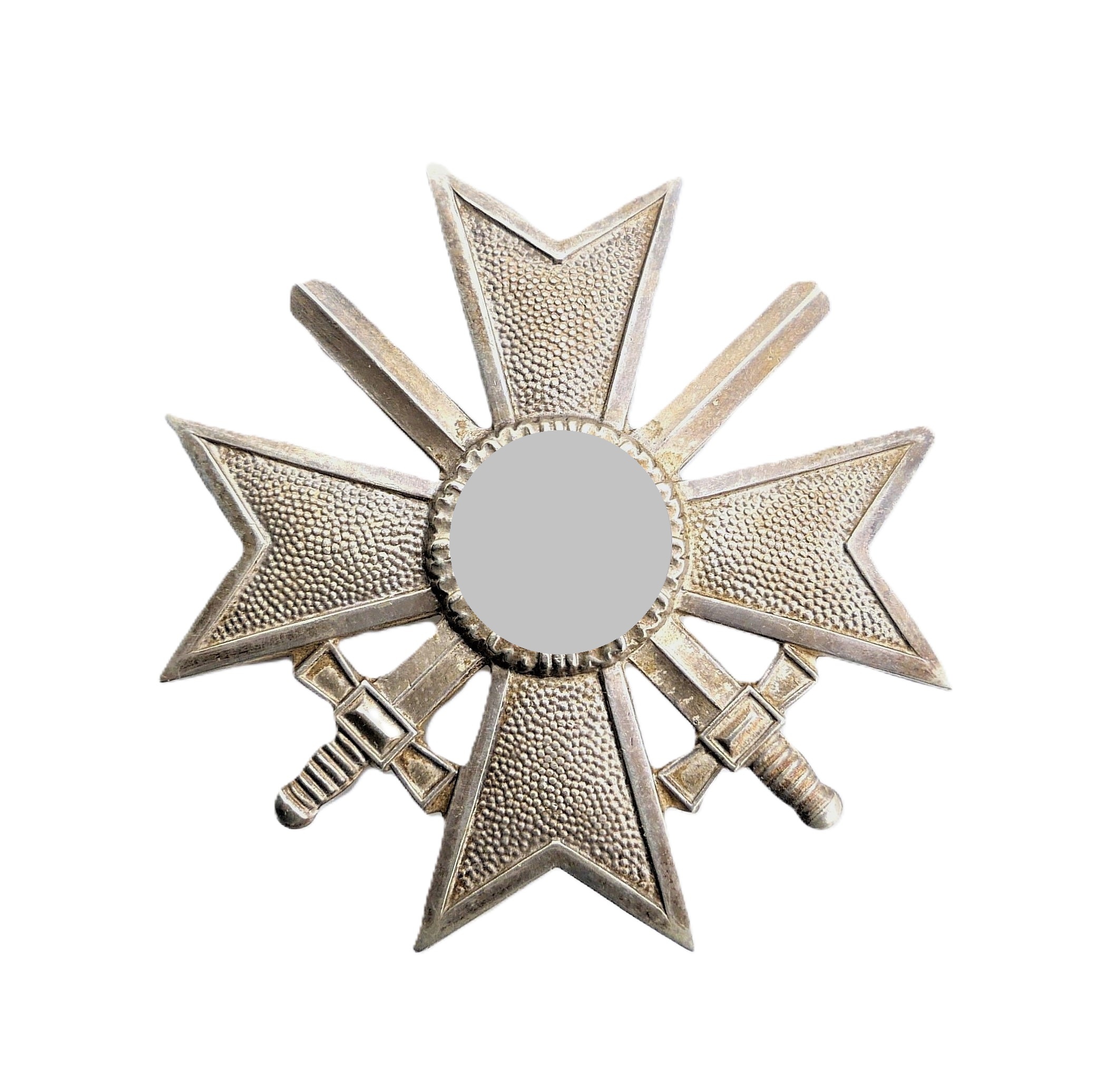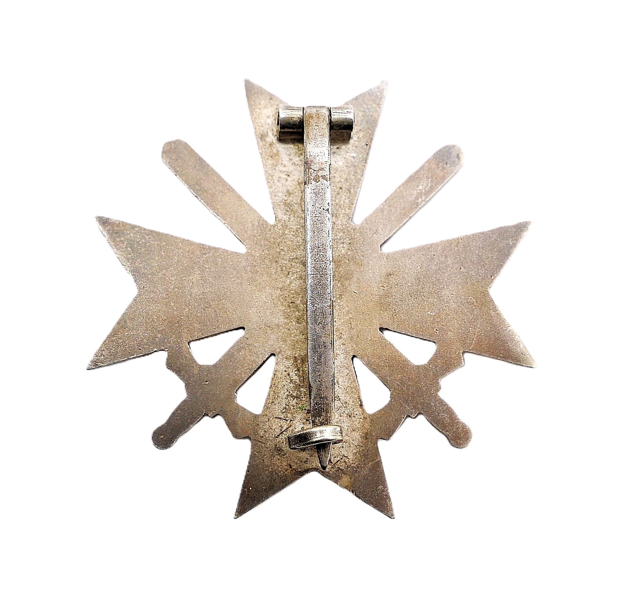 Kriegsverdienstkreuz 1. Klasse mit Schwerter. Ohne Hersteller. Ausführung aus Buntmetall mit breiter Nadel. Getragener Zustand.