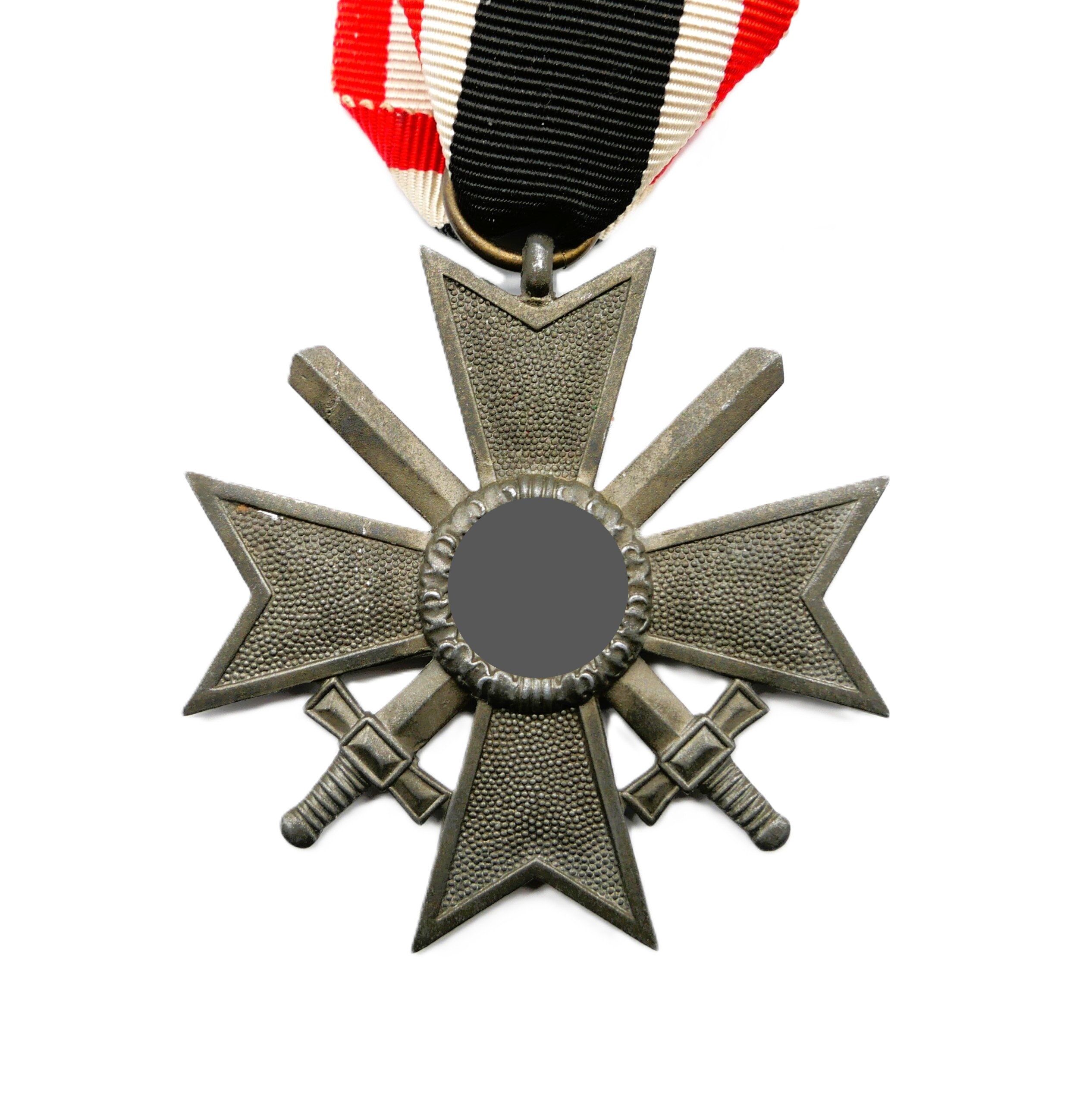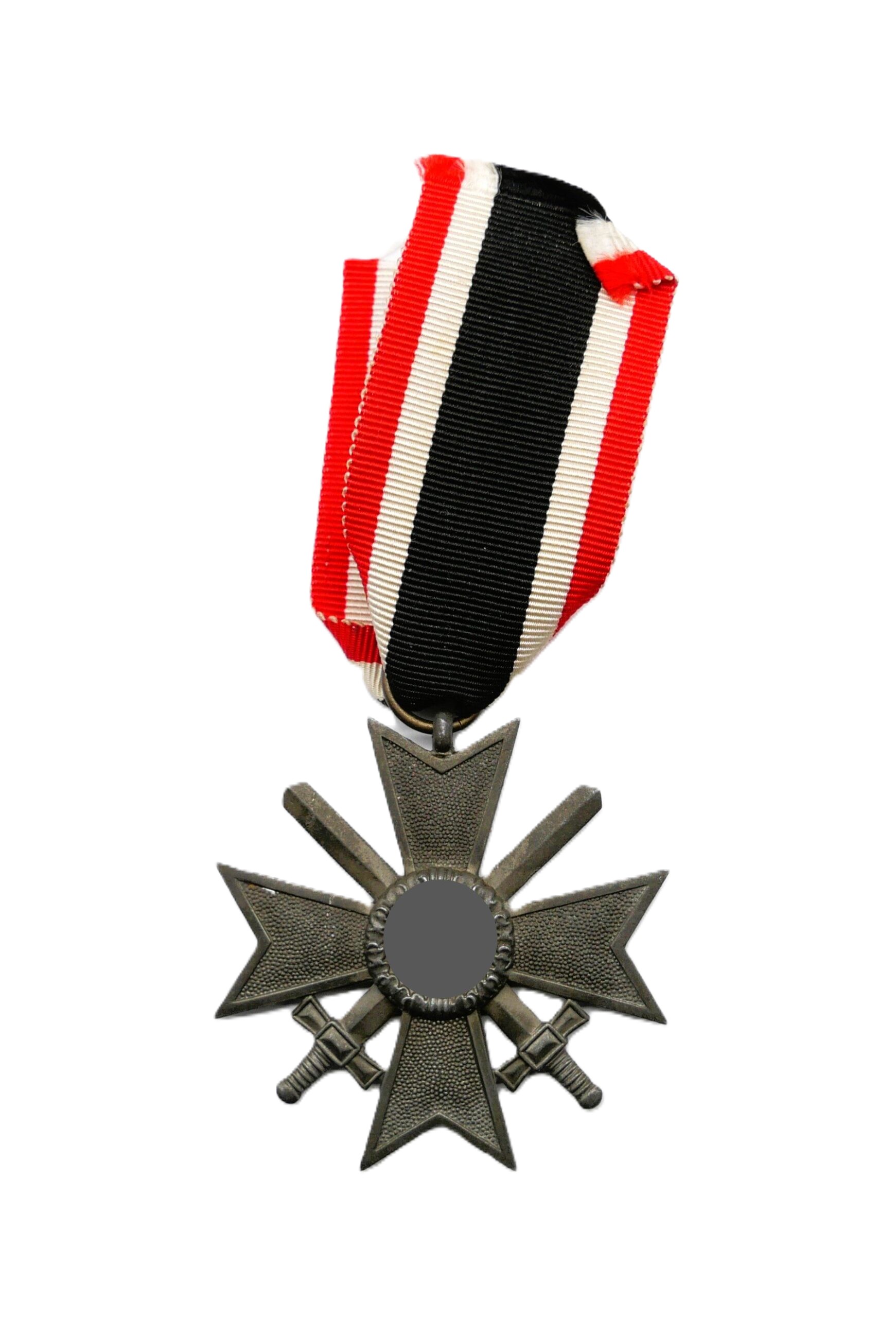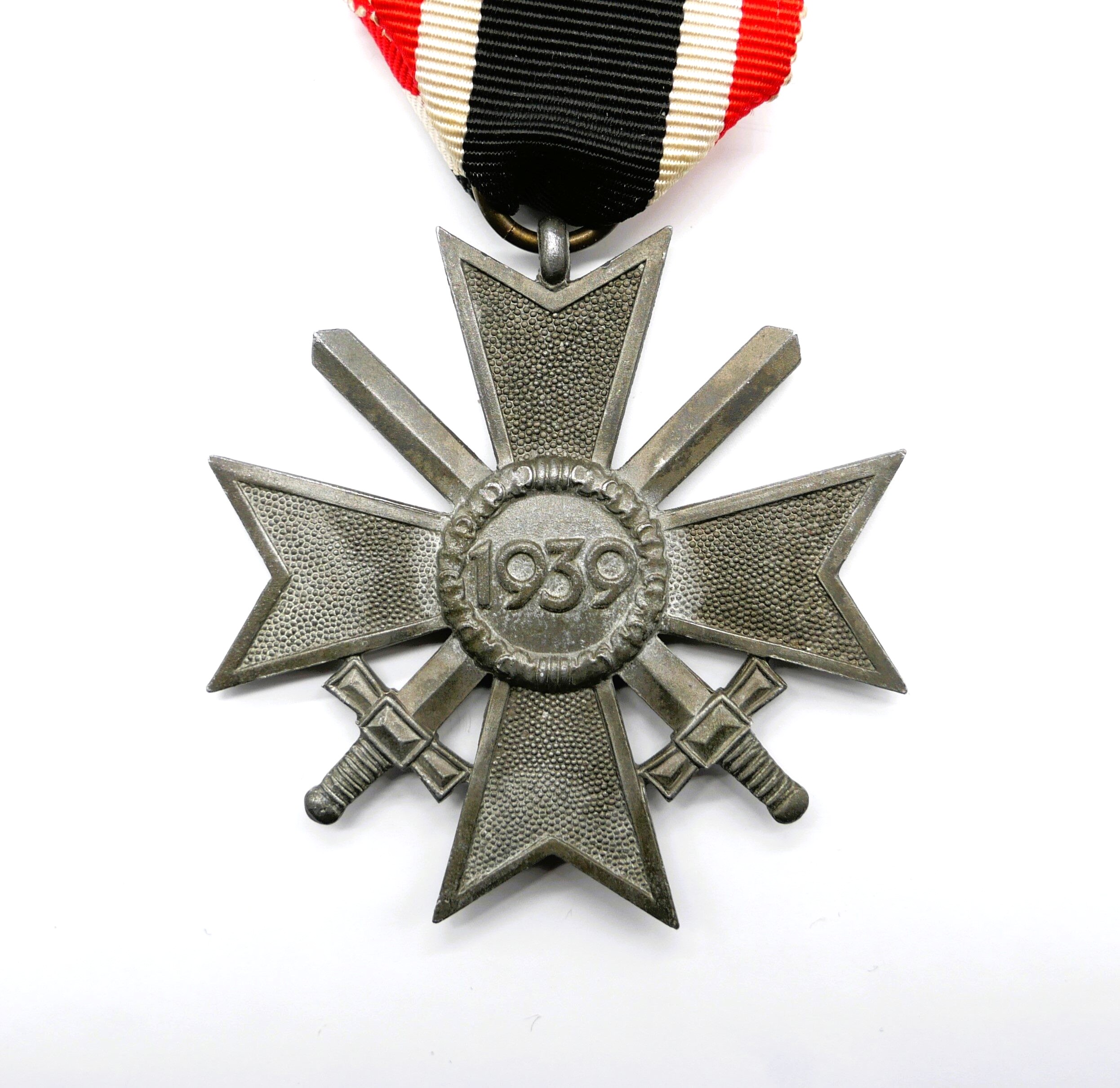 Kriegsverdienstkreuz 2. Klasse mit Schwerter am 11,5 cm langen Bandabschnitt. Zinkstück. Ohne Hersteller.