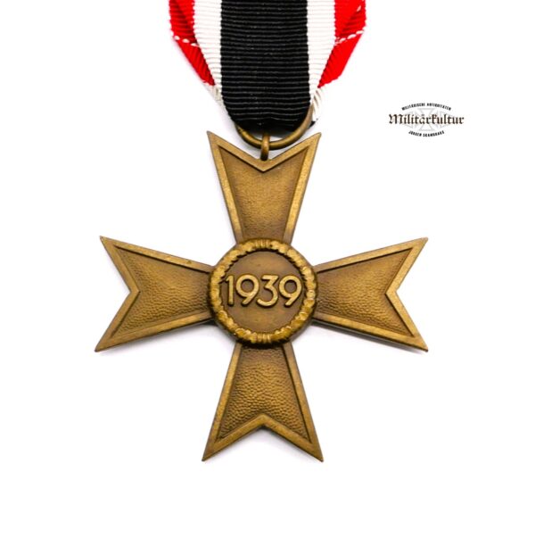 Kriegsverdienstkreuz 2. Klasse ohne Schwerter am 12 cm langen Bandabschnitt. Dieser wurde mal ergänzt. Buntmetallstück ohne Hersteller.Schöner Zustand.