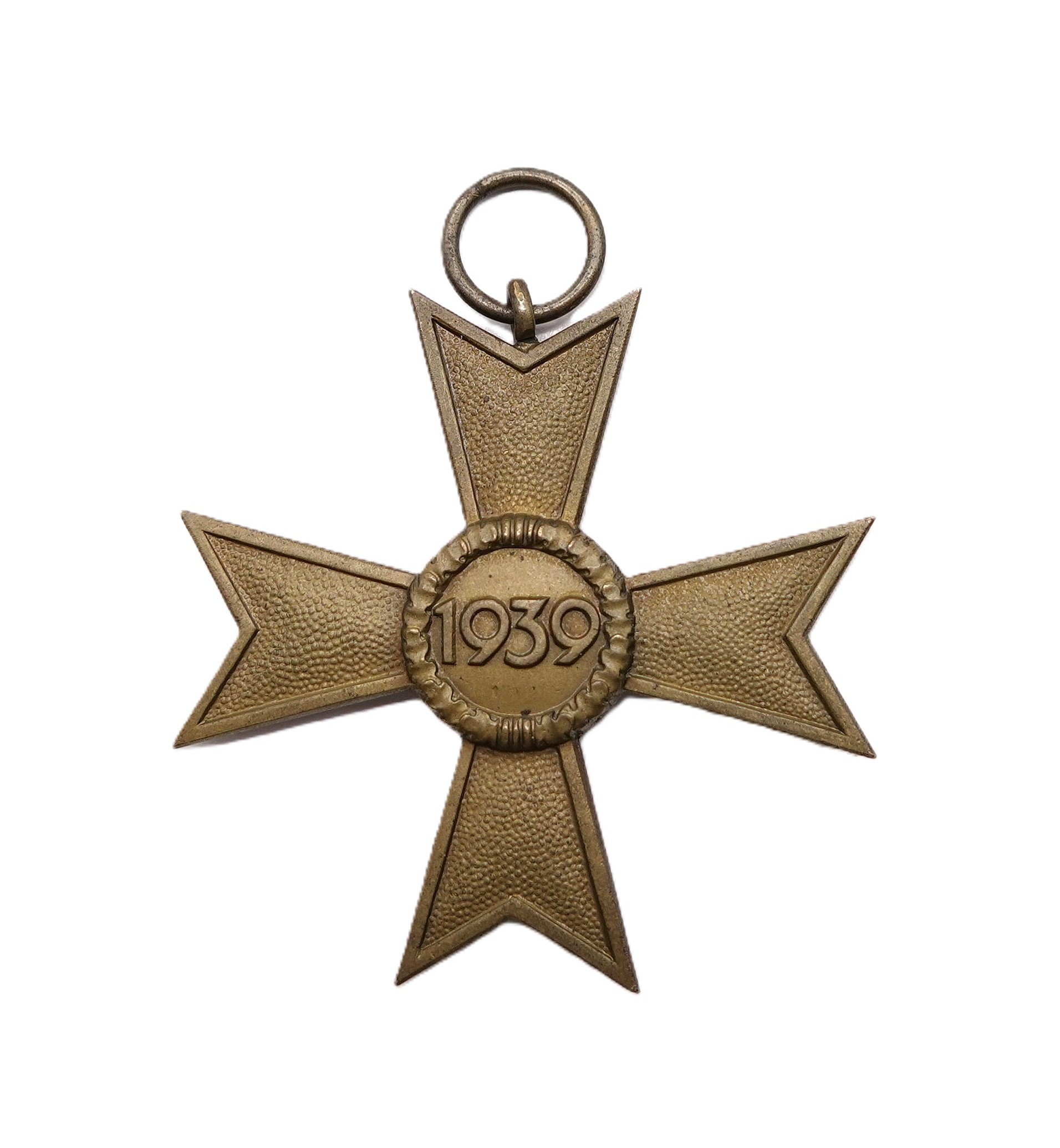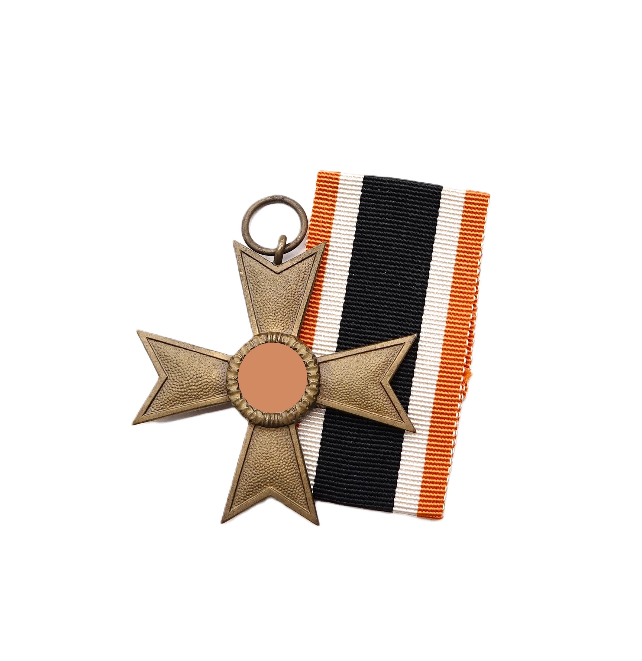 Kriegsverdienstkreuz 2. Klasse ohne Schwerter am 12 cm langen Bandabschnitt. Buntmetallstück ohne Hersteller. Schöner Zustand.