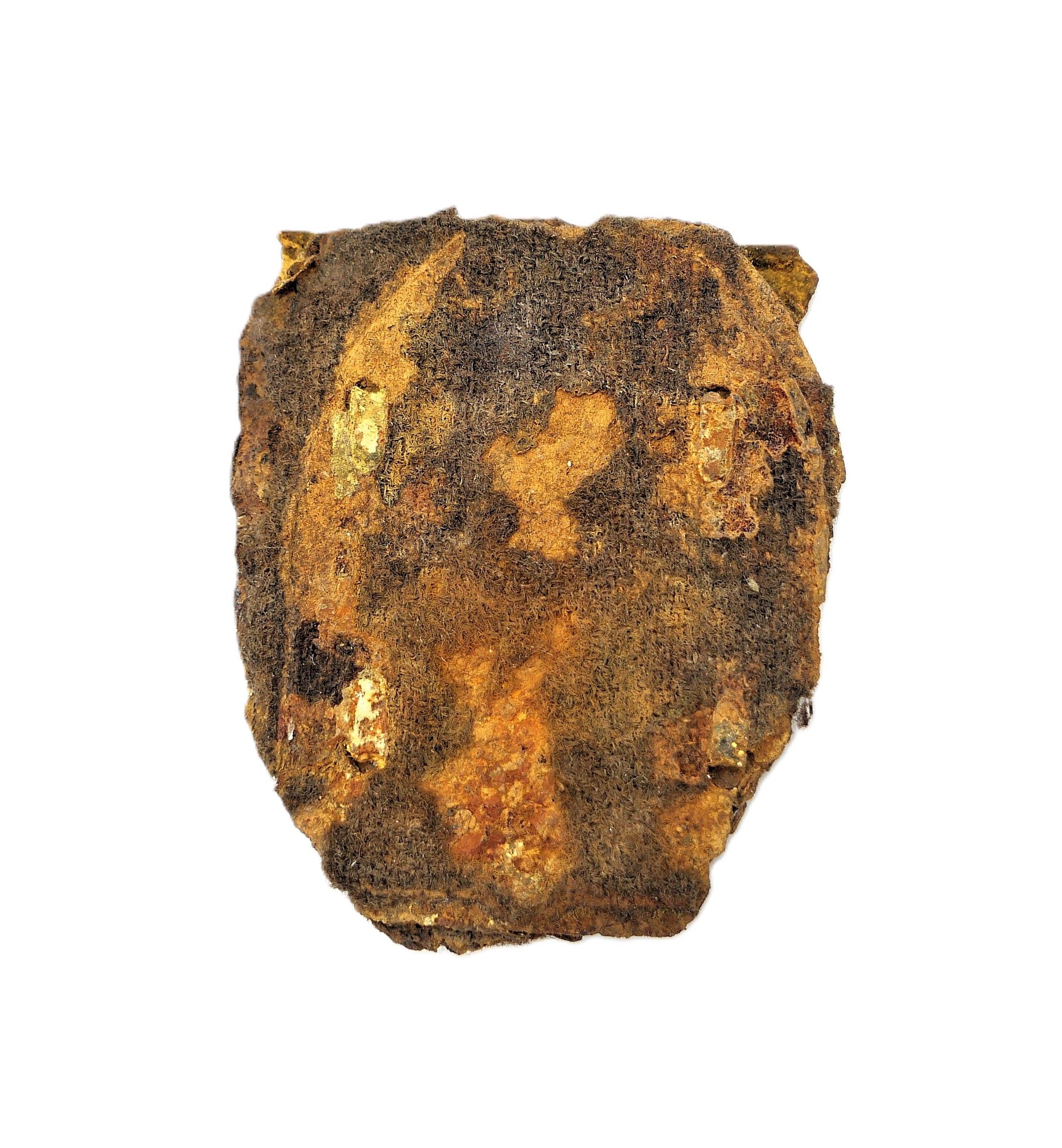 Kubanschild. Komplett mit der Rückenplatte und Resten der Stoffunterlage. Schönes Belegstück.