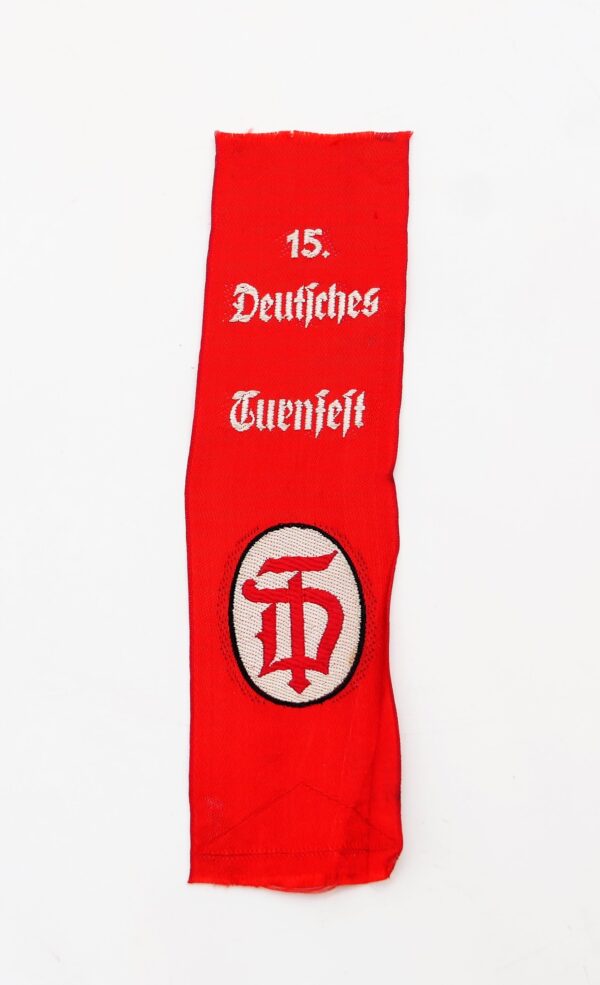 Lesezeichen – 15. Deutsches Turnfest, Stuttgart 1933 aus Stoff. Masse 19,9 cm x 5,3 cm. War mal in einem Fotoalbum eingeklebt. Hat auf der Rückseite ein paar Klebereste. Selten zu bekommen.