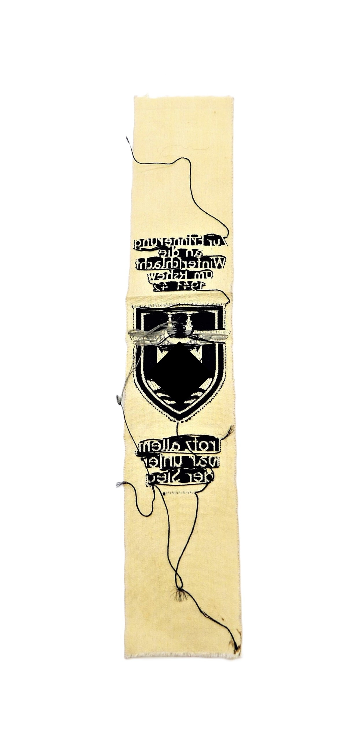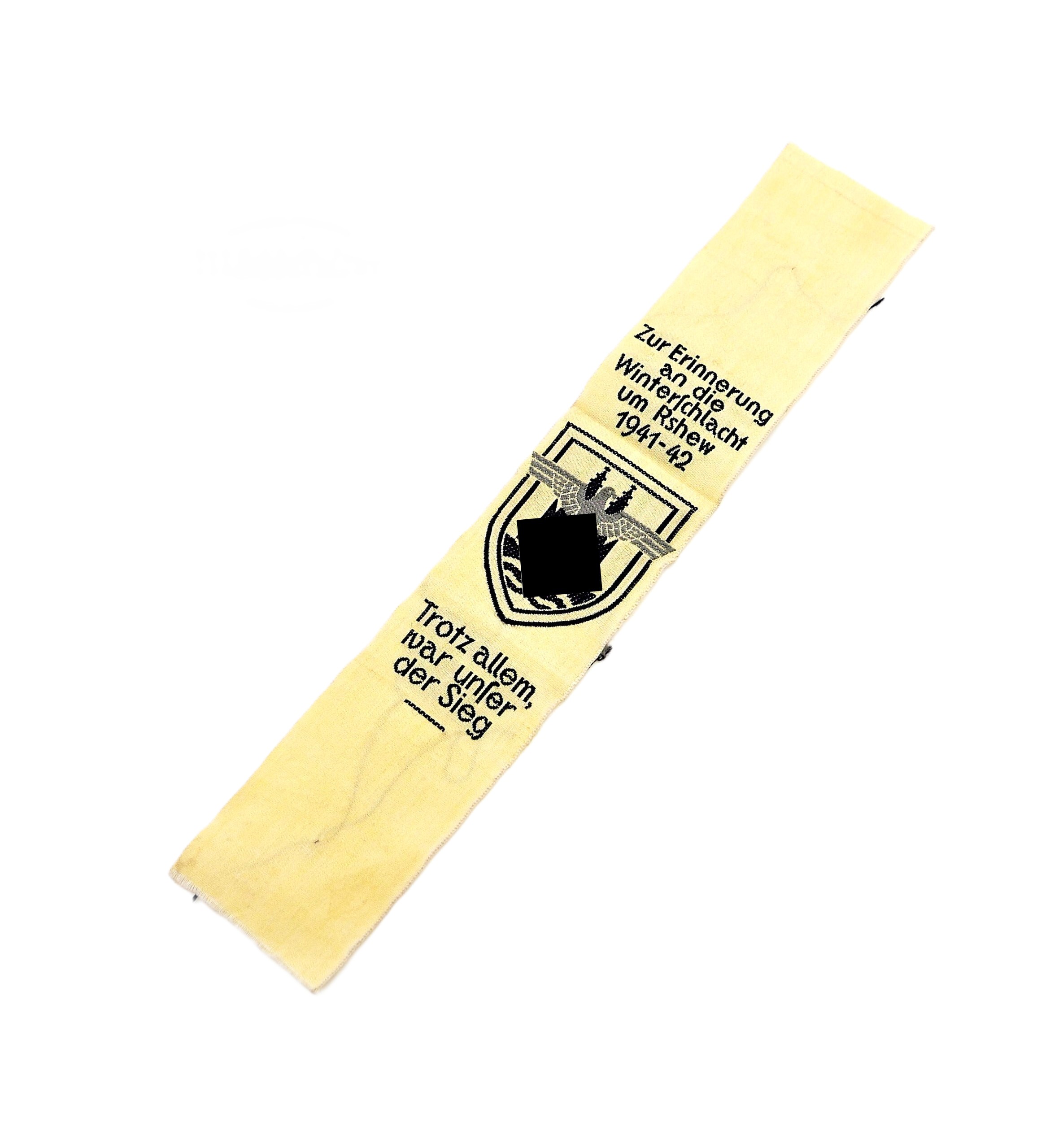 Lesezeichen – Zur Erinnerung an die Winterschlacht um Rshew 1941-42 – Trotz allem, war unser der Sieg. Mit Gebrauchsspuren. Masse: 22,5 cm x 4,2 cm.