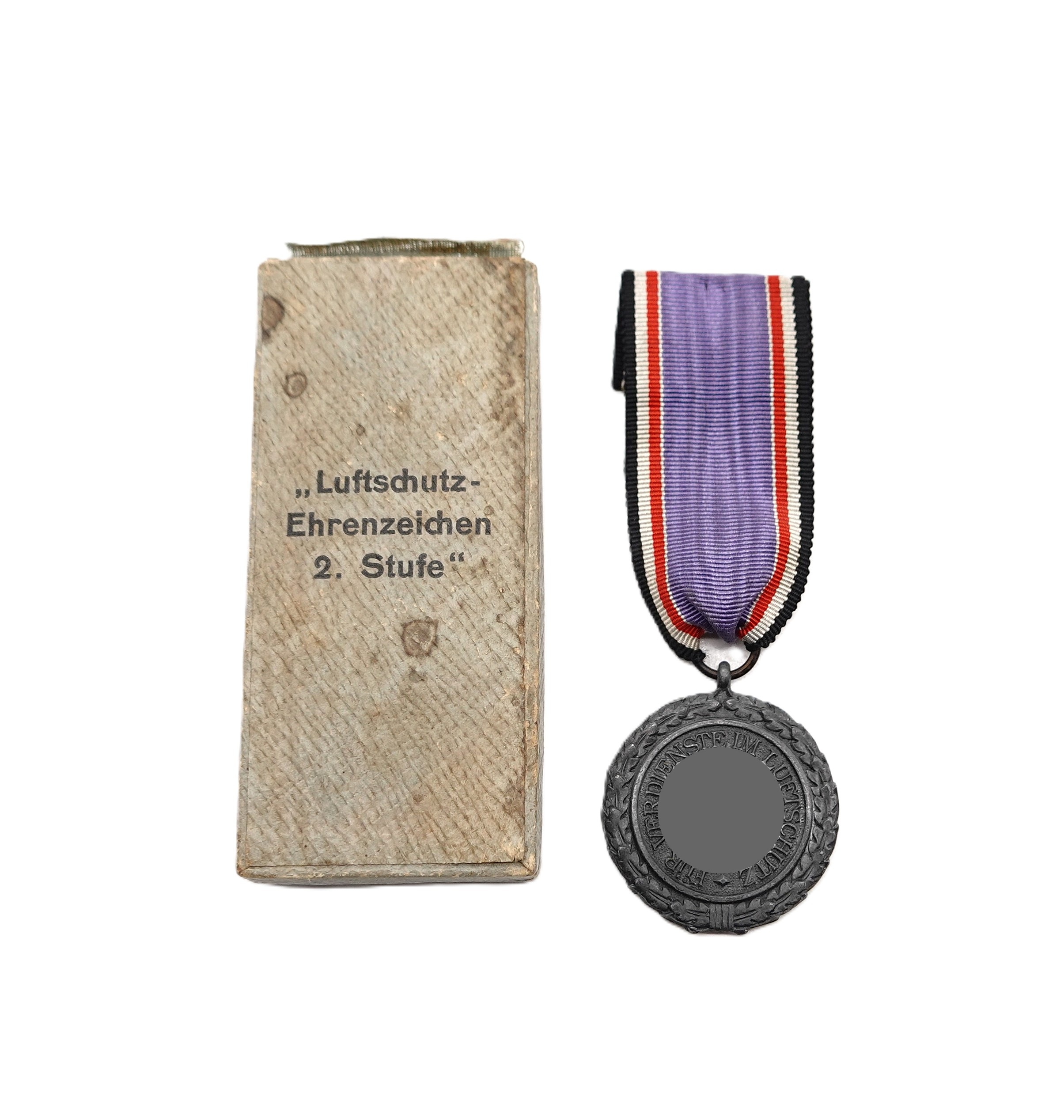Luftschutz Ehrenzeichen – 2.Stufe – Mit Verleihungsetui. Deckel hat sich gelöst und ist ab. Schwere Auführung aus Zink. Getragener Zustand.