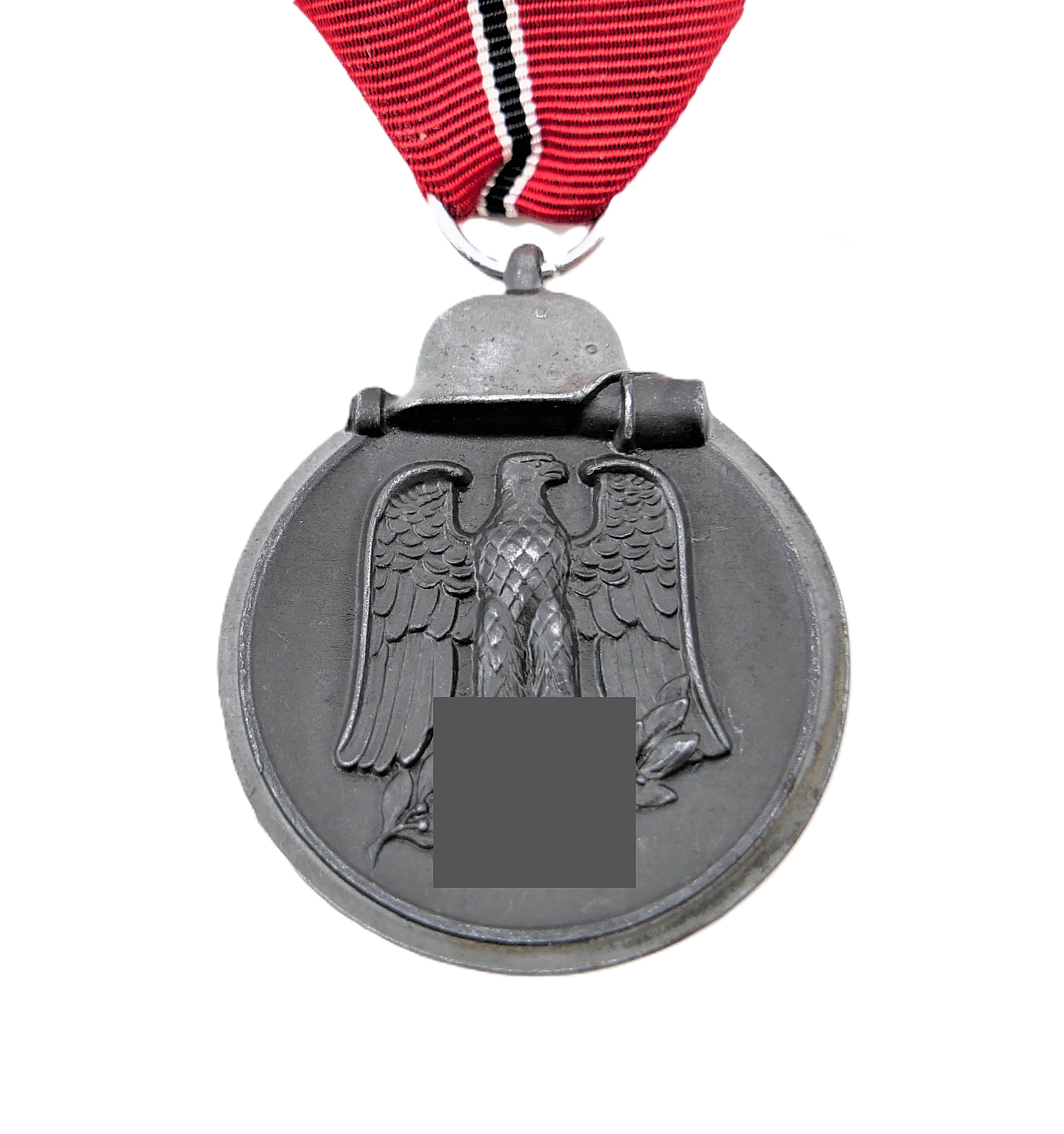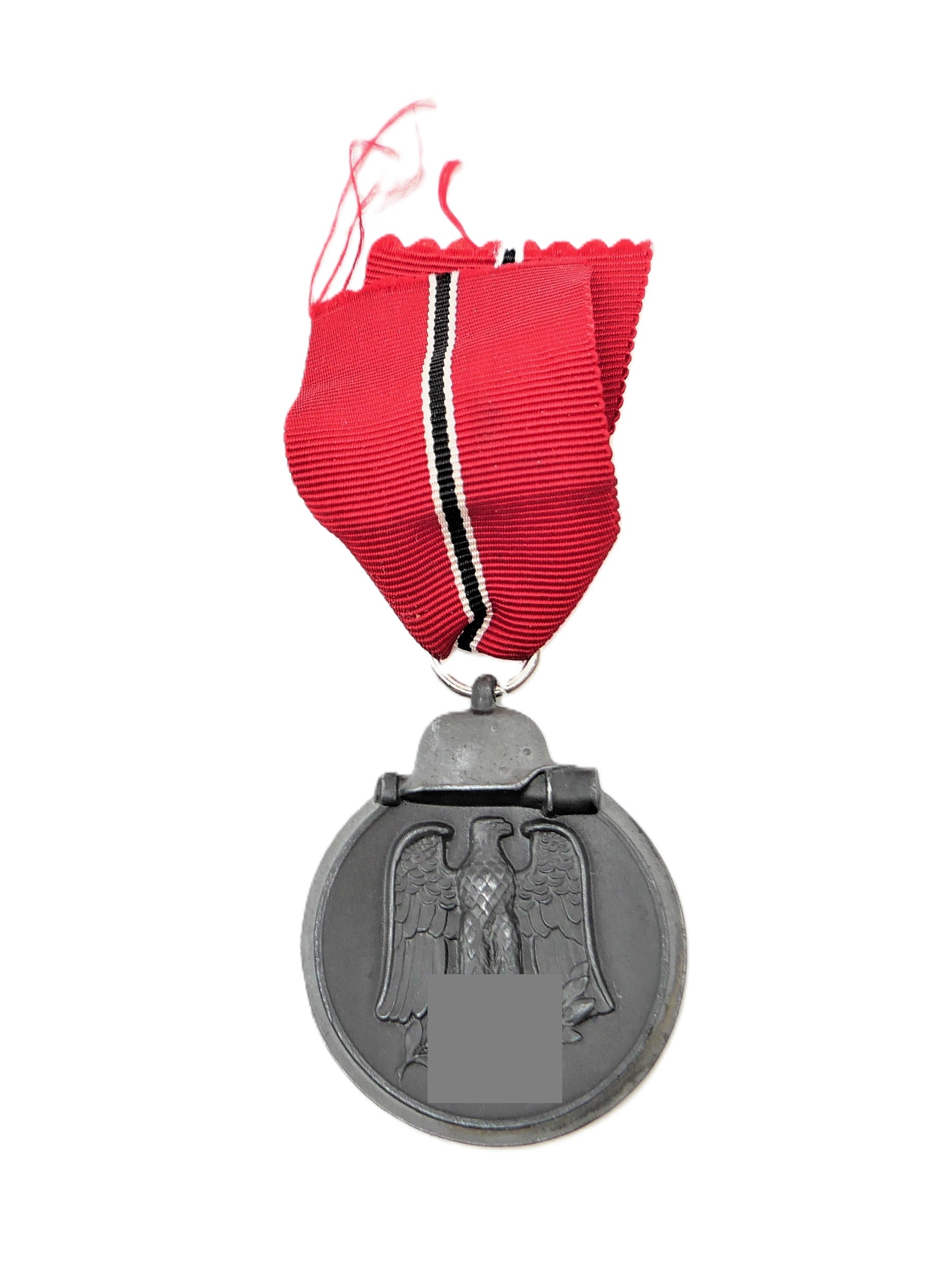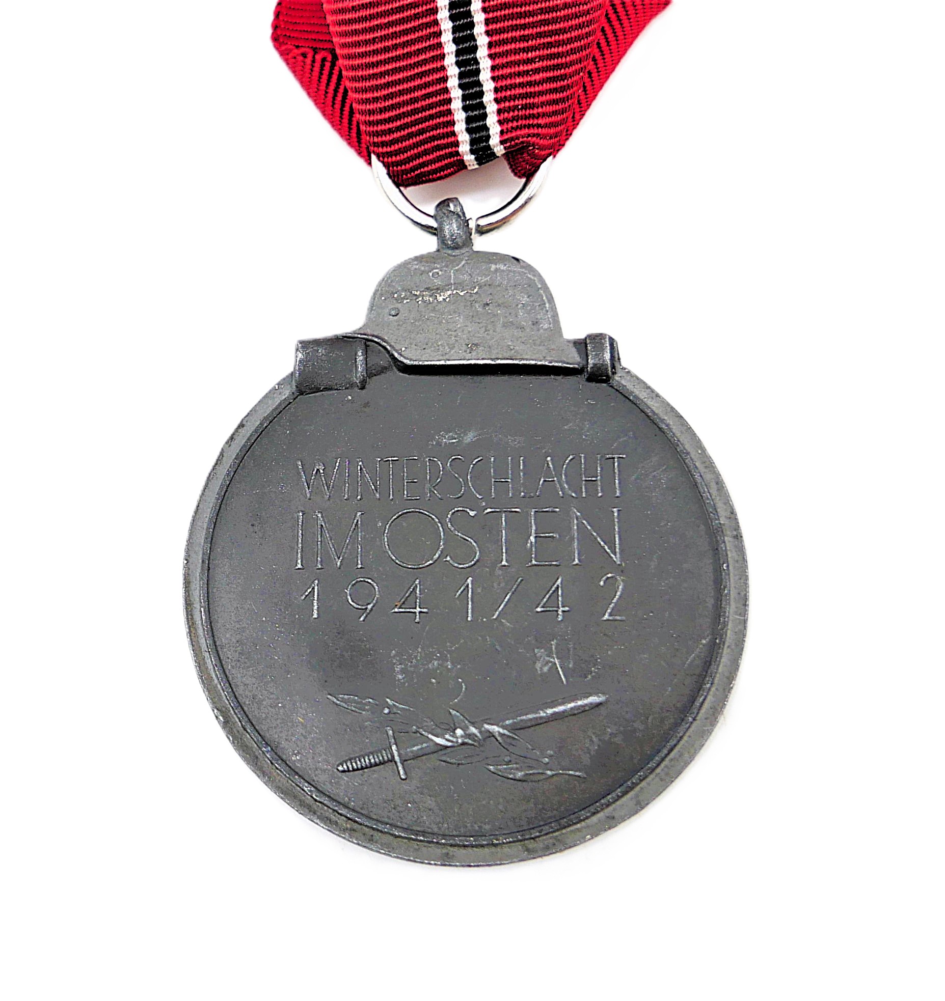 Medaille Winterschlacht im Osten 1941/42 am 9 cm langen Bandabschnitt. Ohne Hersteller. Bandring wurde durch einen Neuen ergänzt.