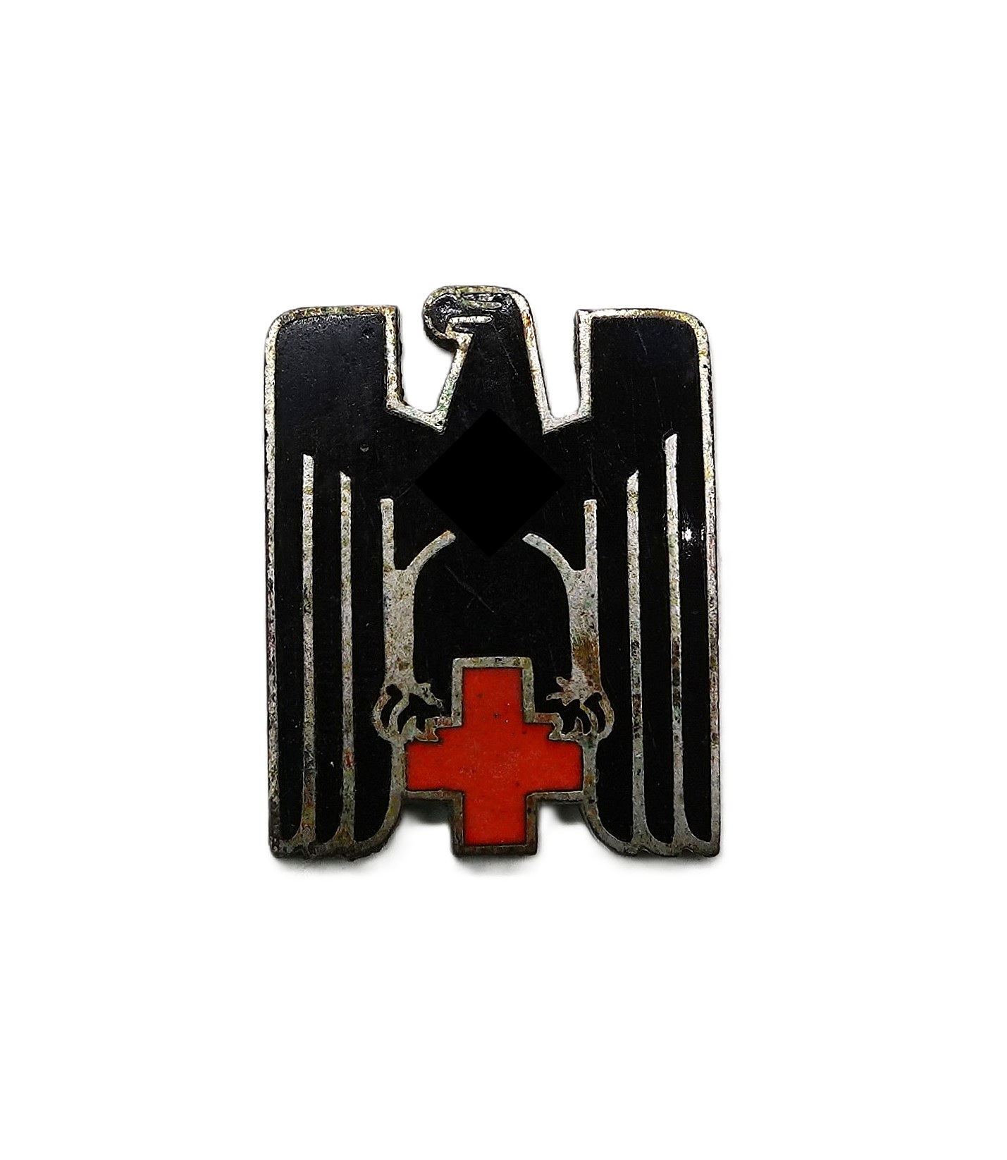Mitgliedsabzeichen – Deutsches Rotes Kreuz (DRK). Rückseitig GES. GESCH. und Hersteller E. L. M. Bodenfund ohne Nadel.