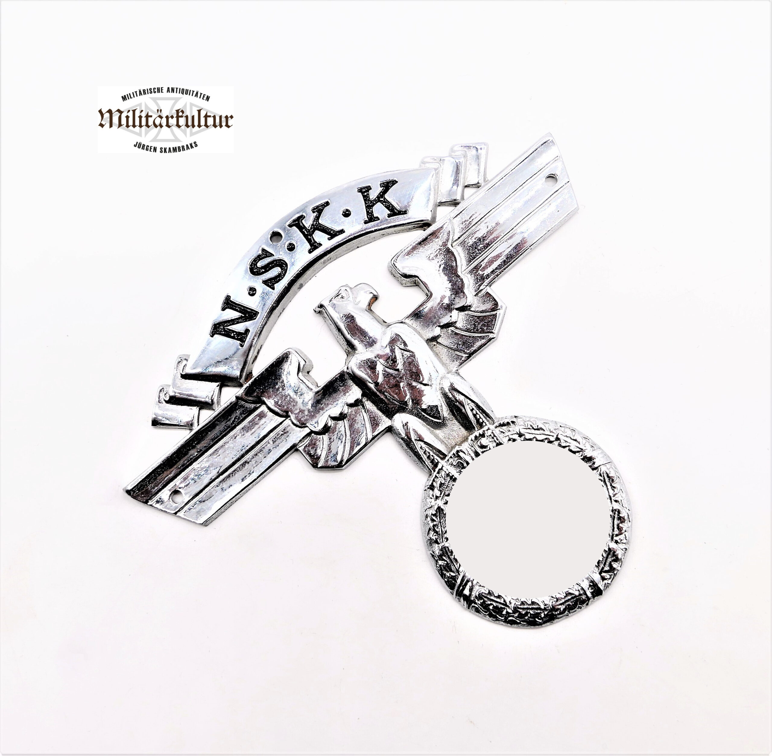 NSKK Adler. Gehe mal von einer Plakette für den Kühler aus. Ohne Hersteller. War nie verbaut und befindet sich in einen fast neuwertigen Zutand. Masse: 11,3 cm x 9,8 cm. Nicht magnetisch.