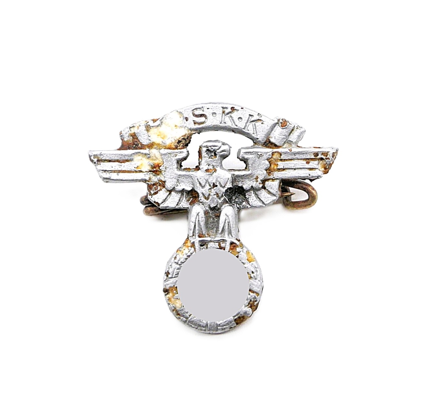 NSKK (Nationalsozialistisches Kraftfahrkorps) Krawatten Adler – Rückseitig RZM und M1/63 für den Hersteller Steinhauer & Lück, Lüdenscheid. Bodenfund aus Aluminium.