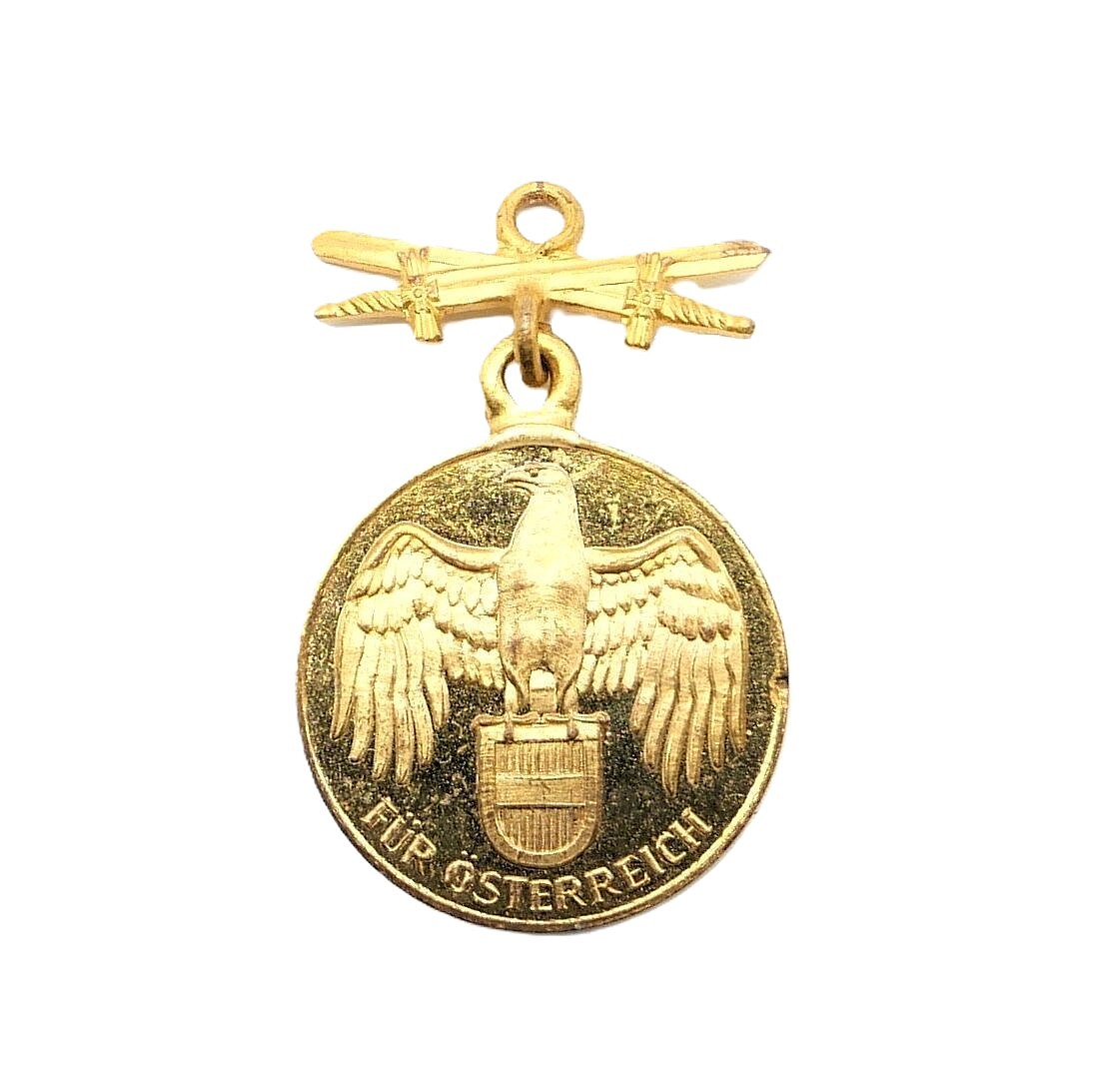 Österreich – 16 mm Miniatur zur Kriegsdenkmünze. Für Österreich 1914-1918 – Mit Schwerter. Getragener Zustand.