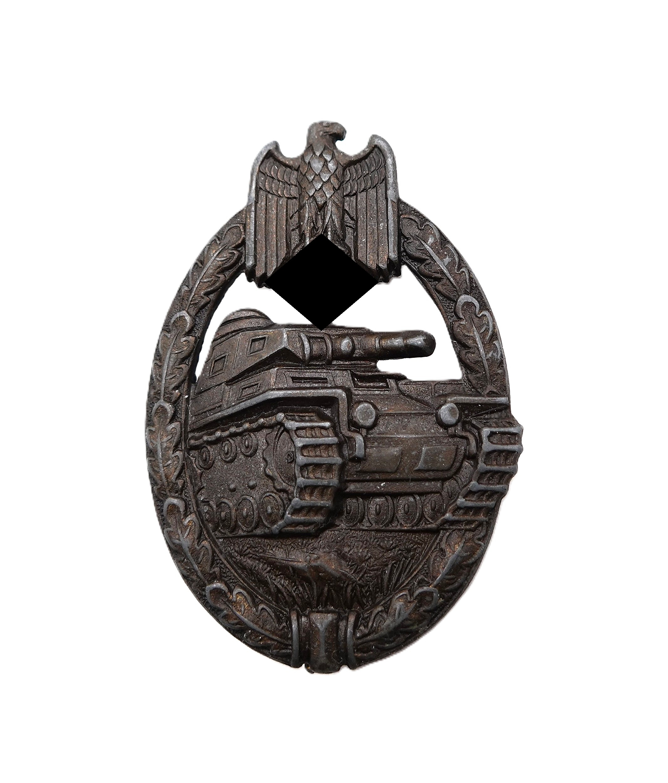 Panzerkampfabzeichen Bronze. Ohne Hersteller. Variante der Firma C.E. Juncker, Berlin. Hohlprägung aus Zink. Getragener Zustand.