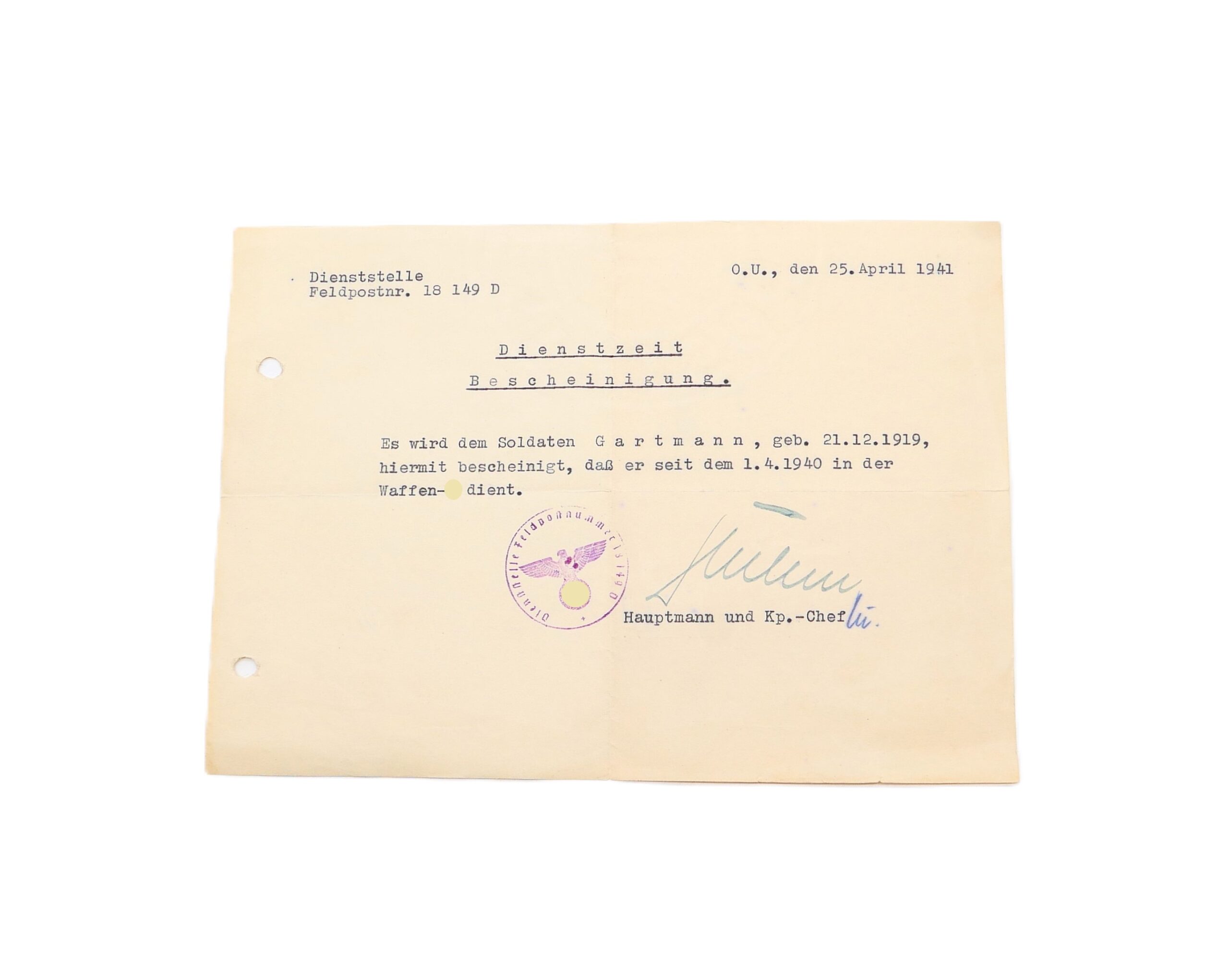 Diverse Papiere des SS Rottenführer Heinz Gartmann. Angehöriger der Division Nordland.