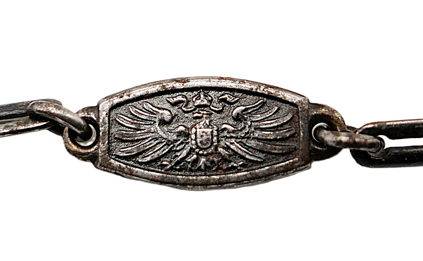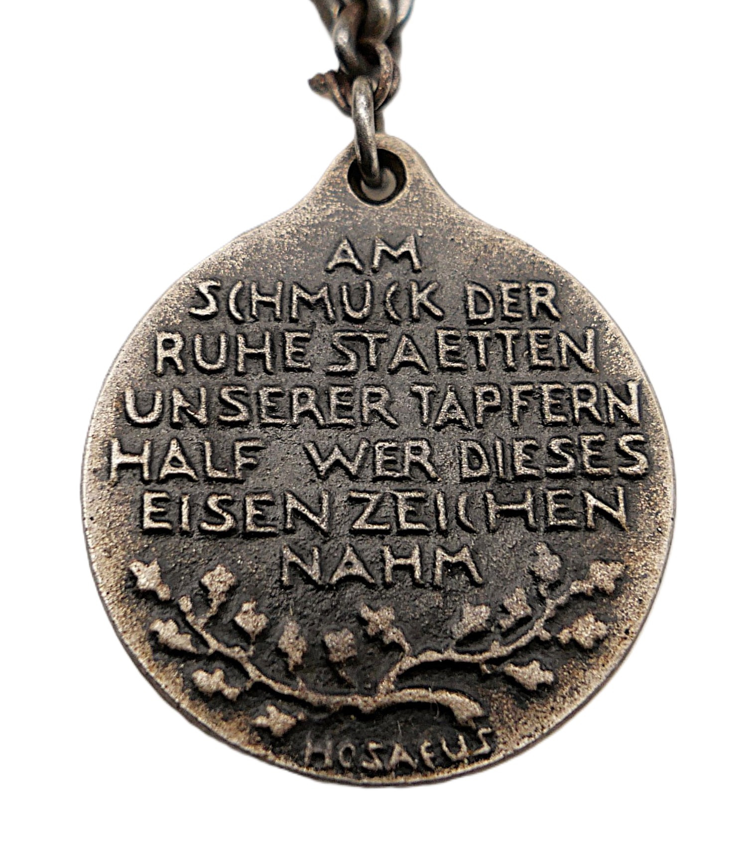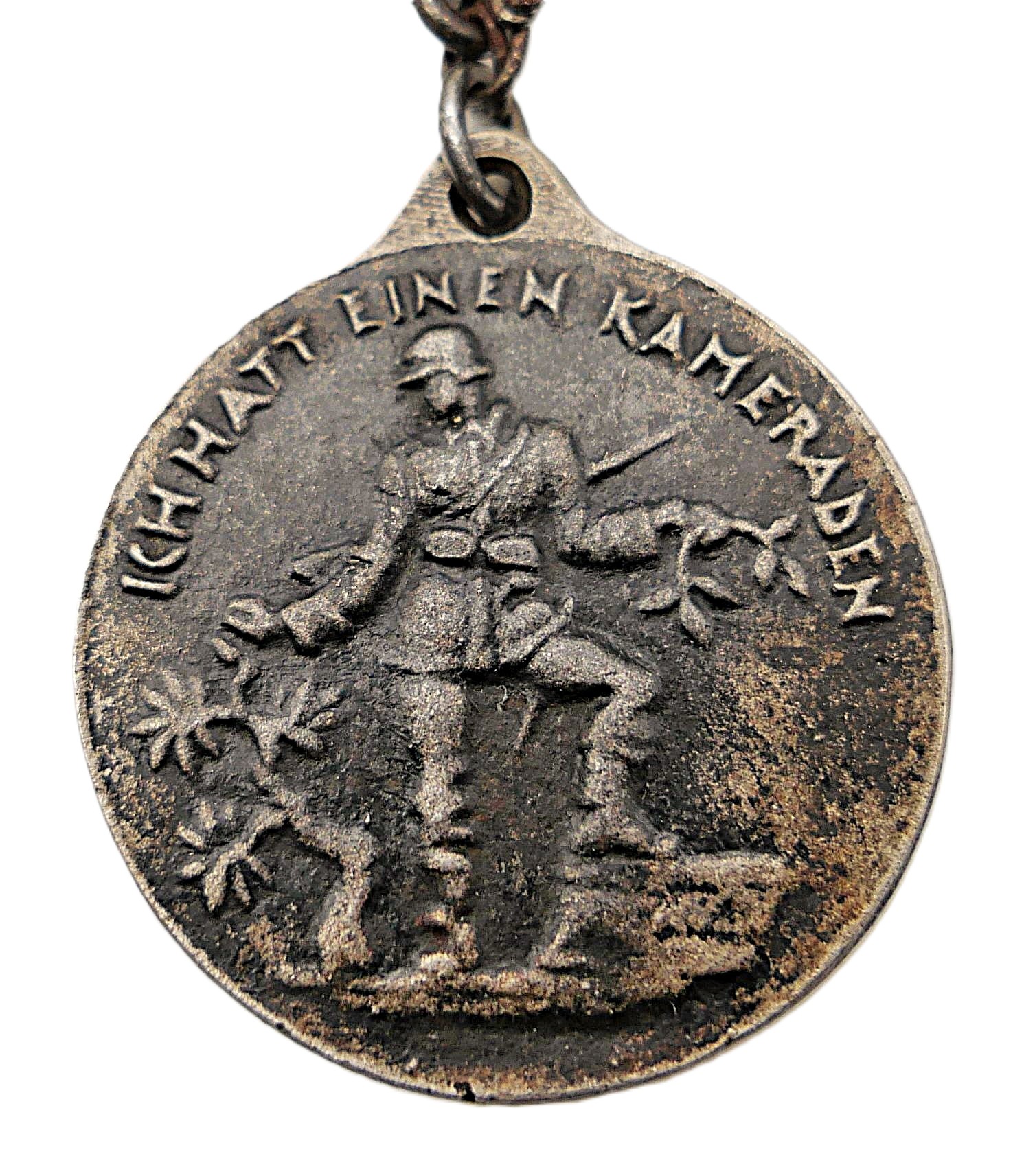 Kette mit Anhänger – Ich hatt einen Kameraden. Gold zur Ehr – Eisen zur Wehr – 1916. Getragener Zustand. Ein Verschluss defekt.