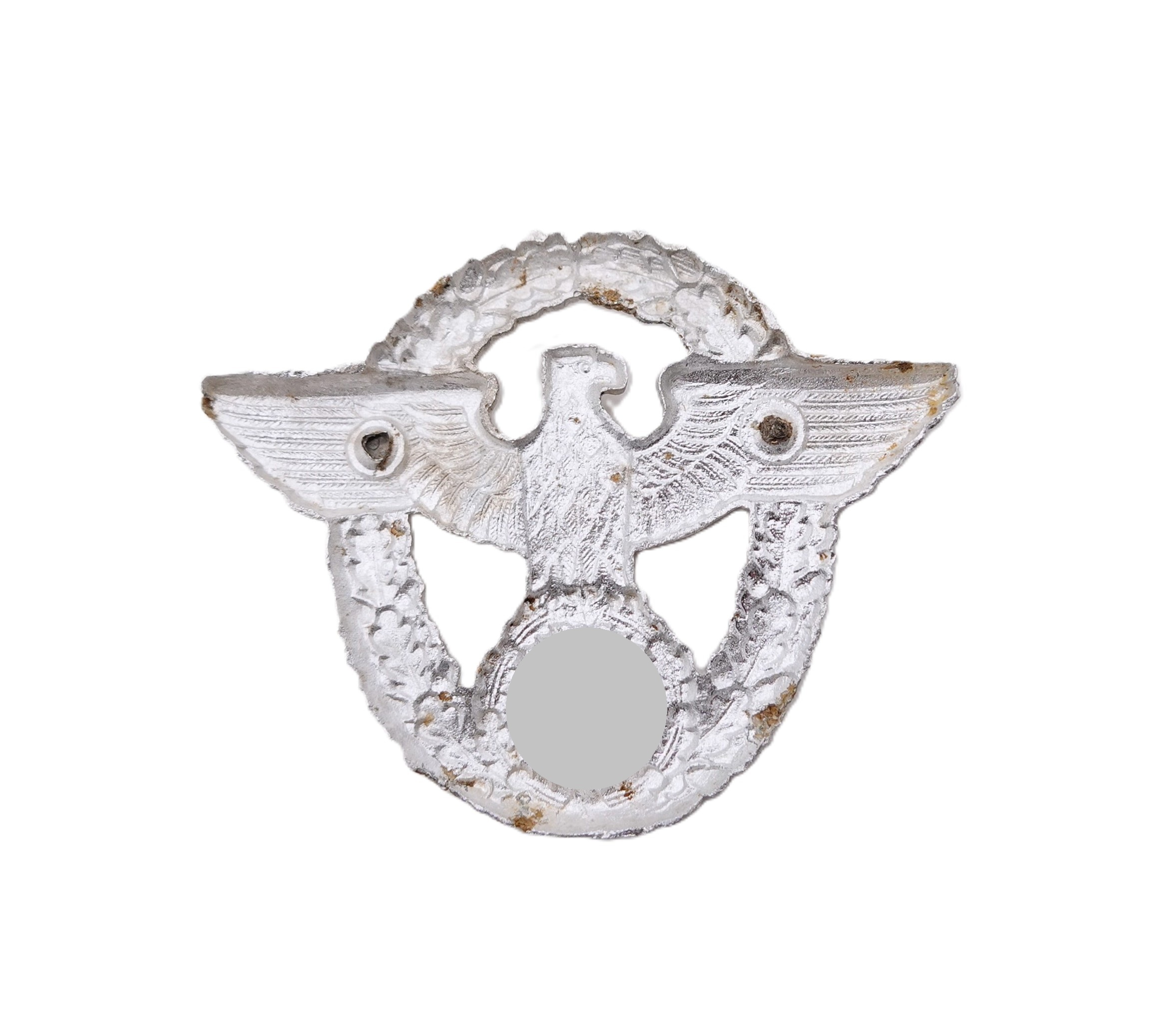Polizei Mützenadler für die Schirmmütze 2. Modell. Für Mannschaften. Aus Aluminium. Bodenfund ohne Splinte.