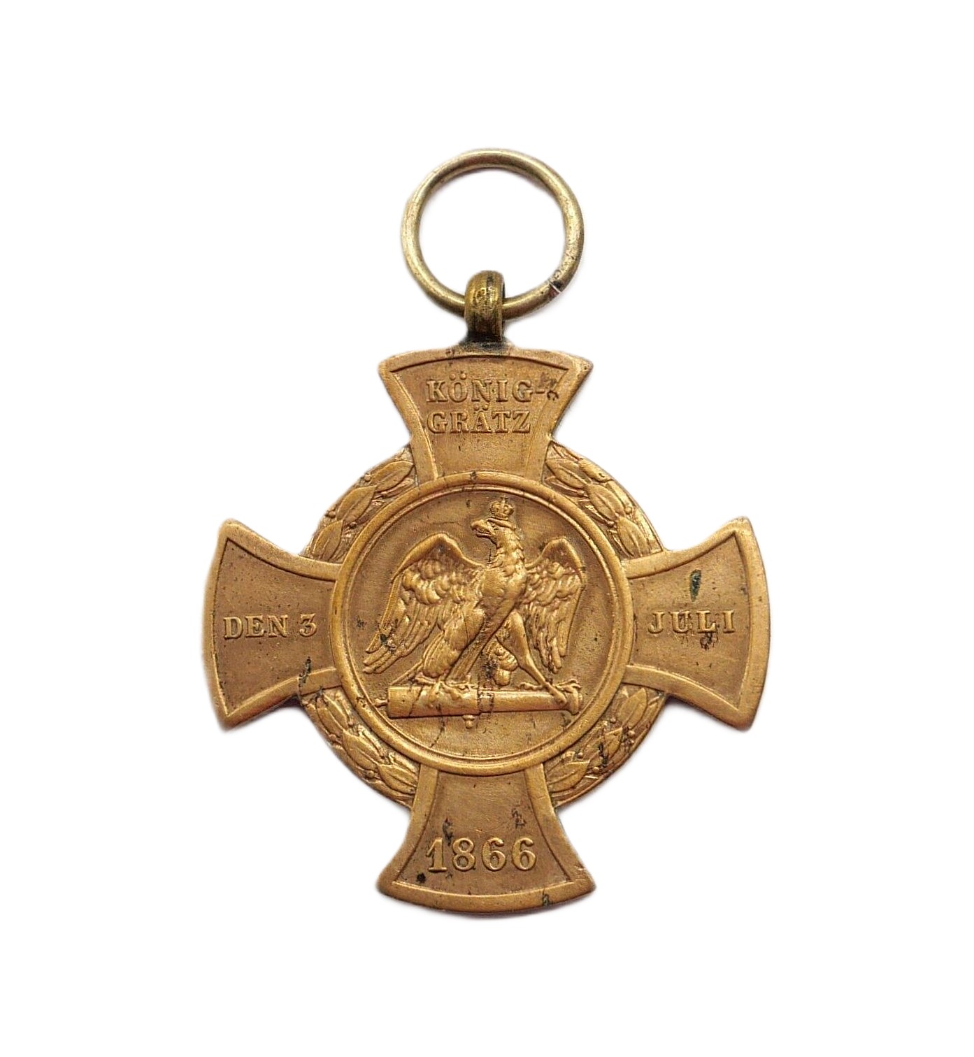 Preussen – Erinnerungskreuz 1866 Königgrätz. Getragener Zustand. Ein Repro Band liegt bei.