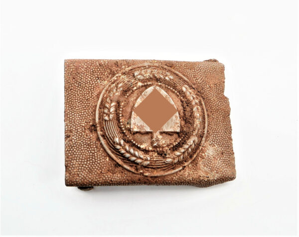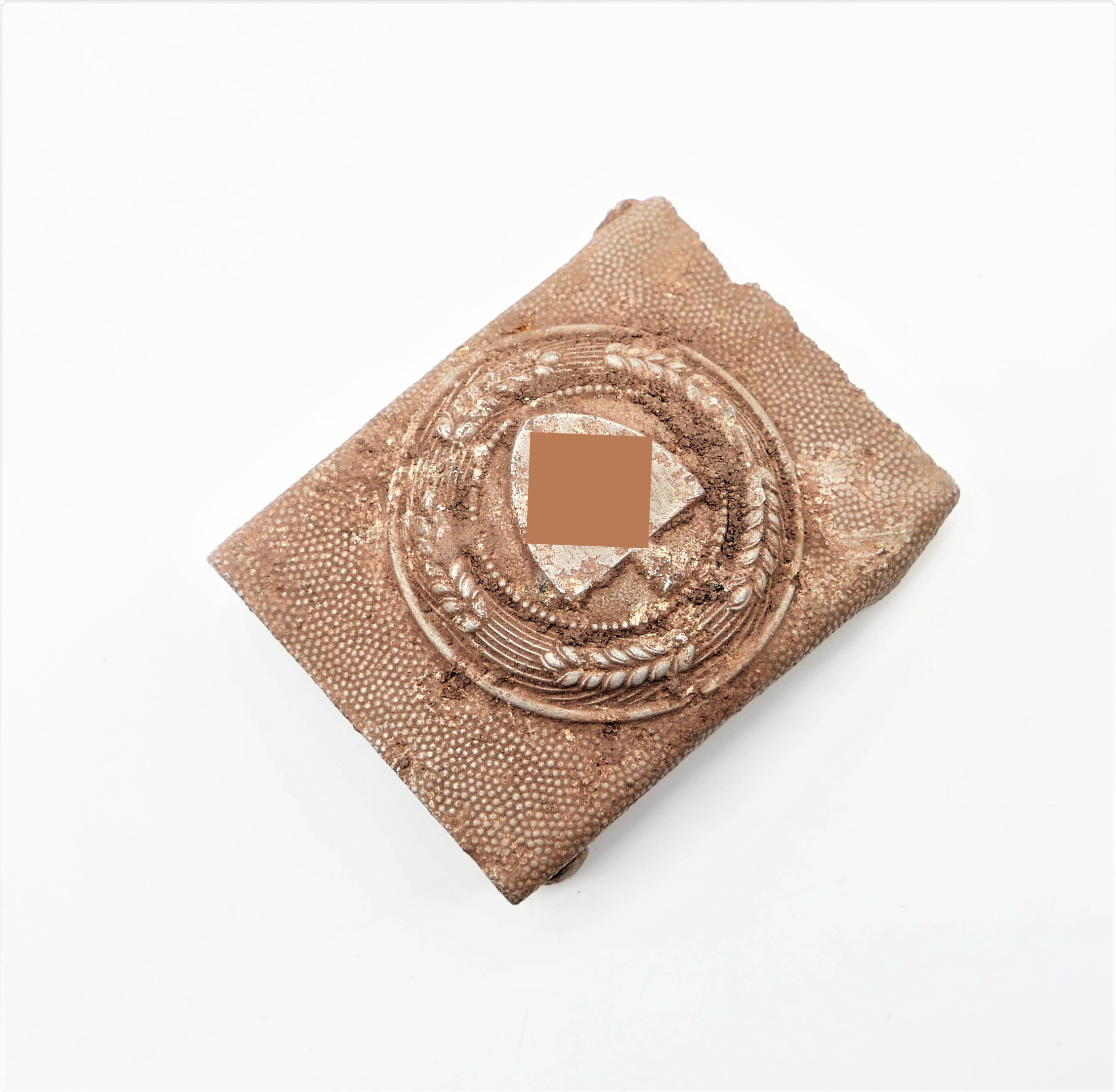 RAD (Reichsarbeitsdienst) Koppelschloss. Aluminium durchgeprägt. Ohne Hersteller. Etwas verbogen. Gut erhaltener Bodenfund.