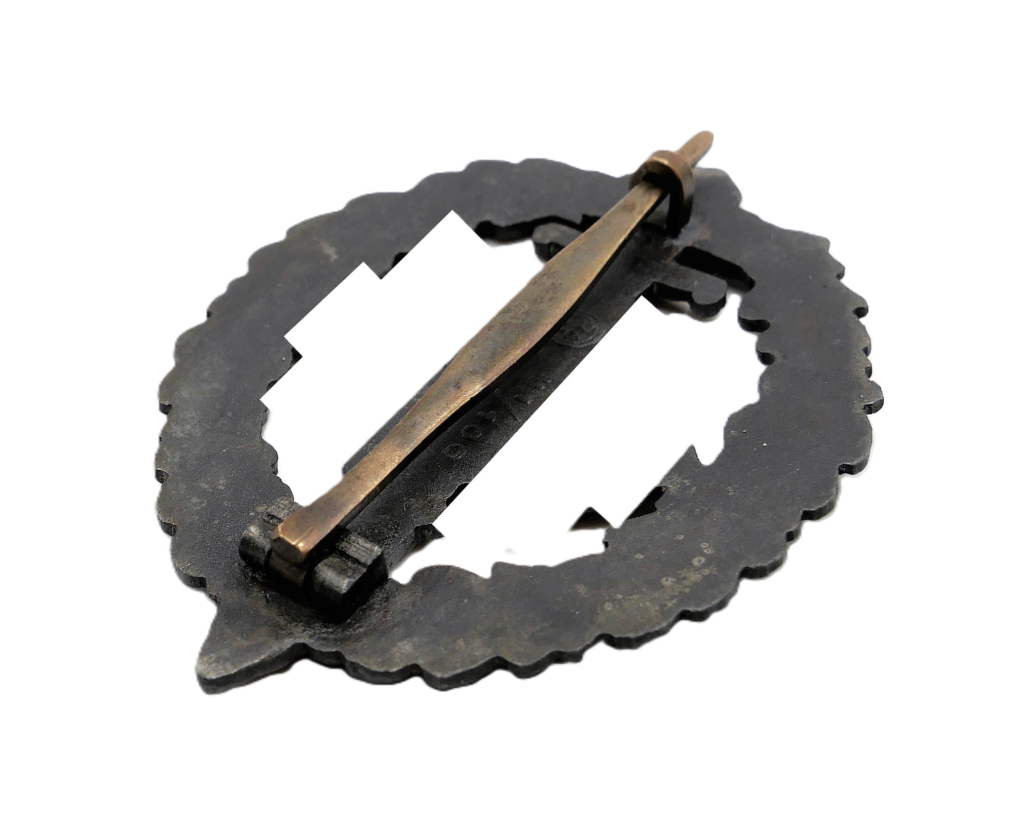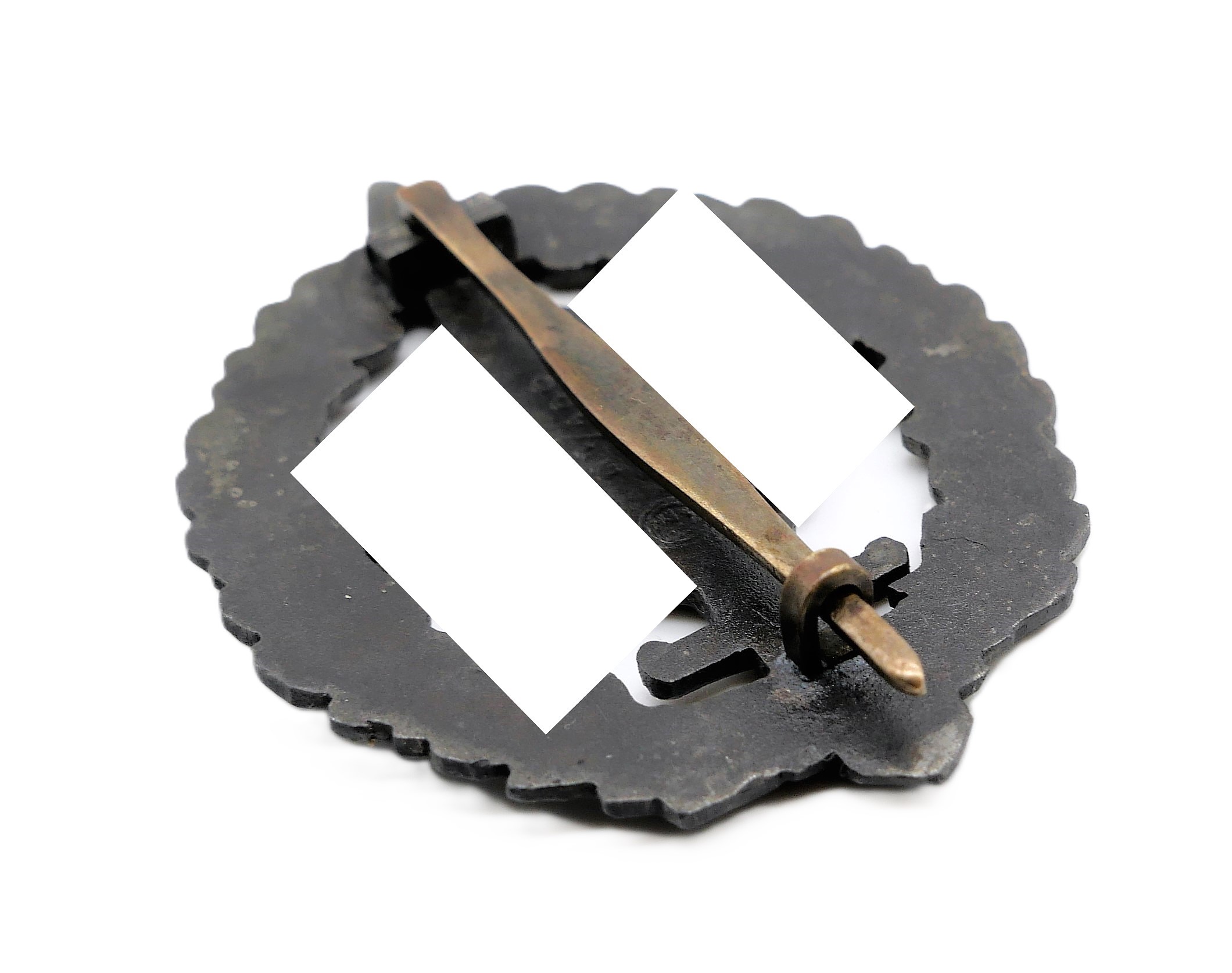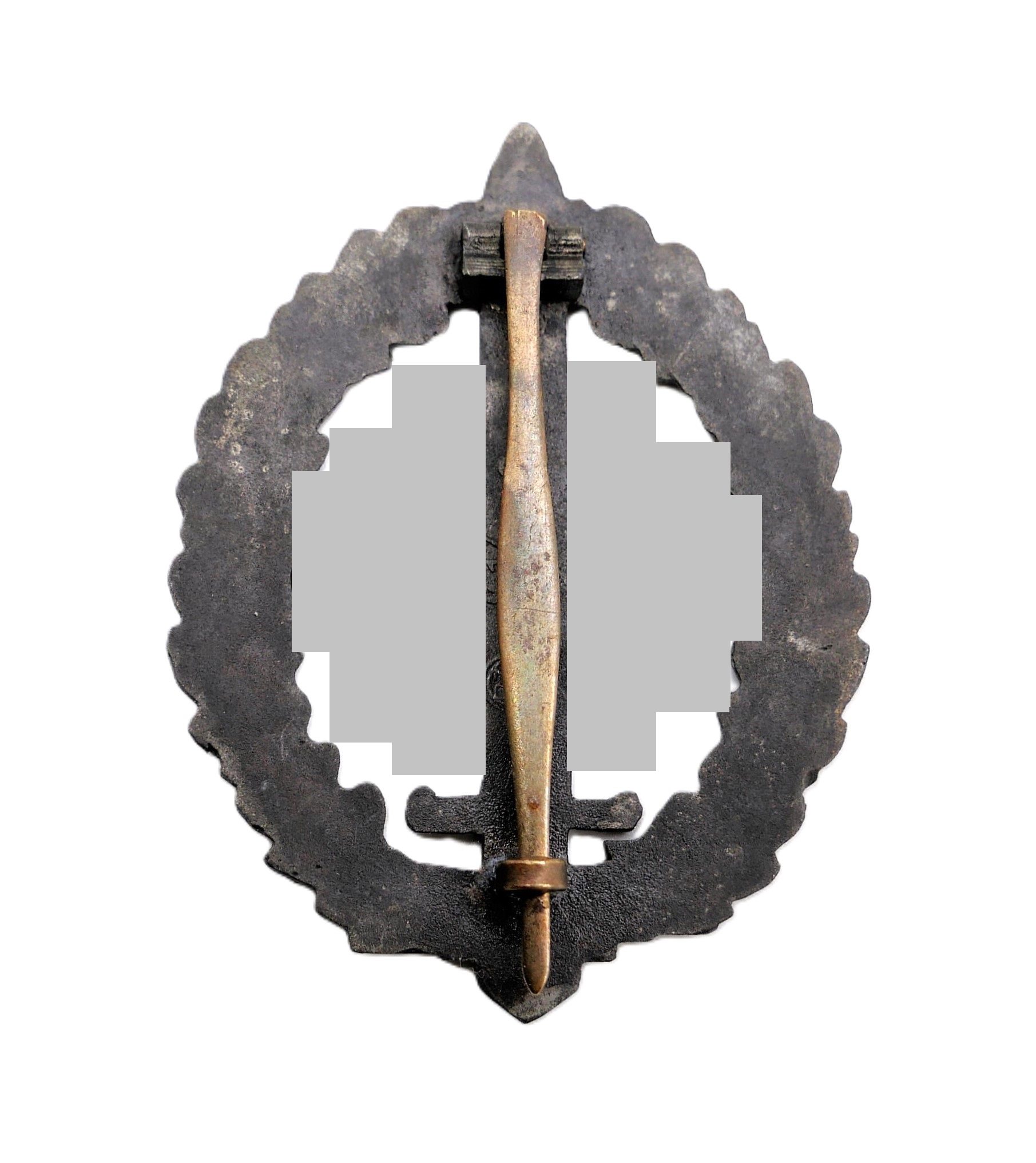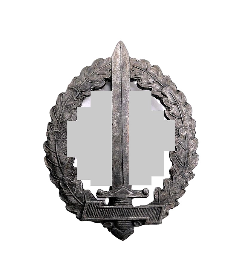 SA-Sportabzeichen (Wehrabzeichen) für Kriegsversehrte – Rückseitig RZM und M1/100 für den Hersteller Werner Redo, Saarlautern. Getragener Zustand.
