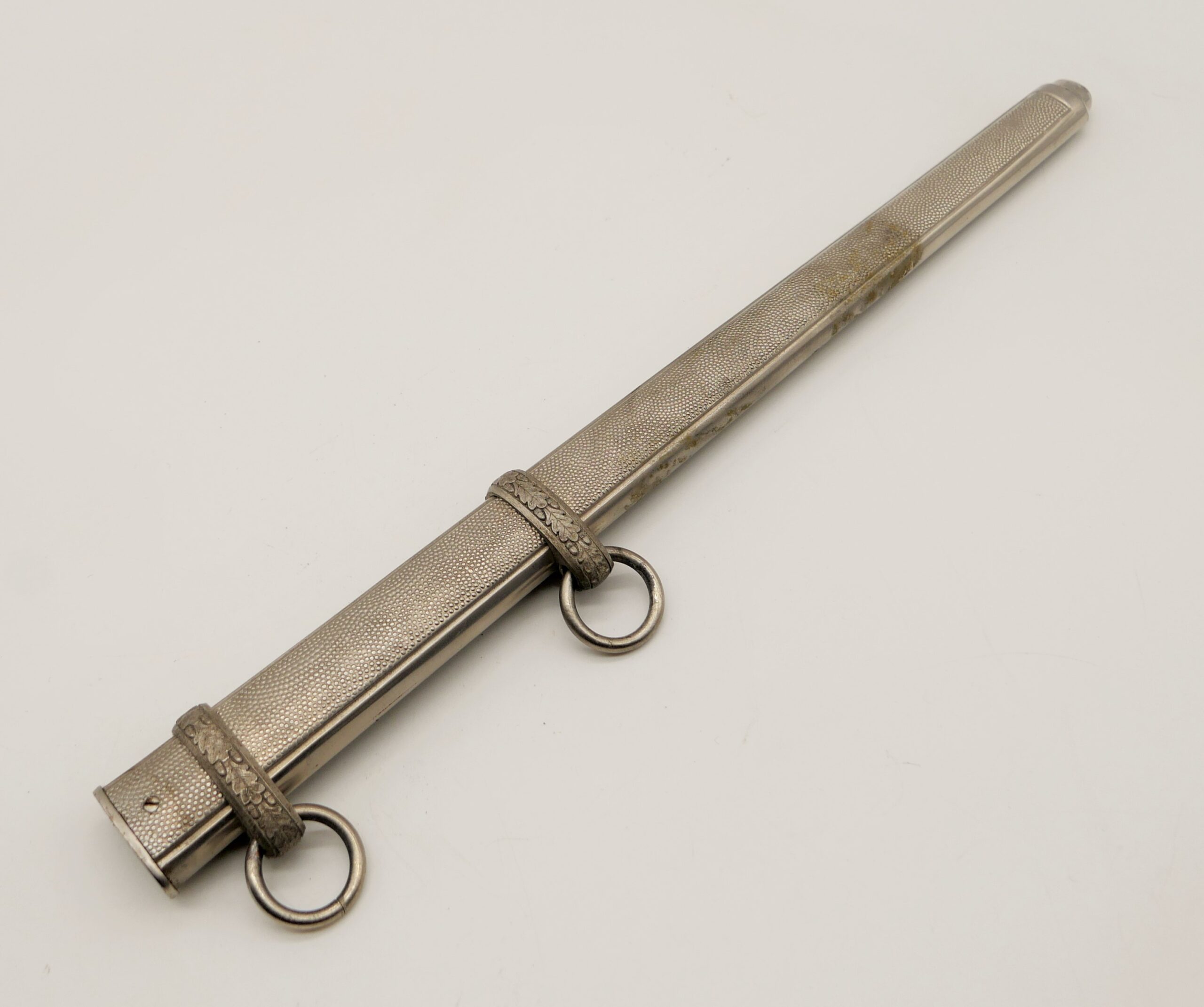 Scheide für den Heeres Offiziersdolch (HOD). Getragener Zustand mit wenig Gebrauchsspuren. Beide Ringe lassen sich abnehmen.