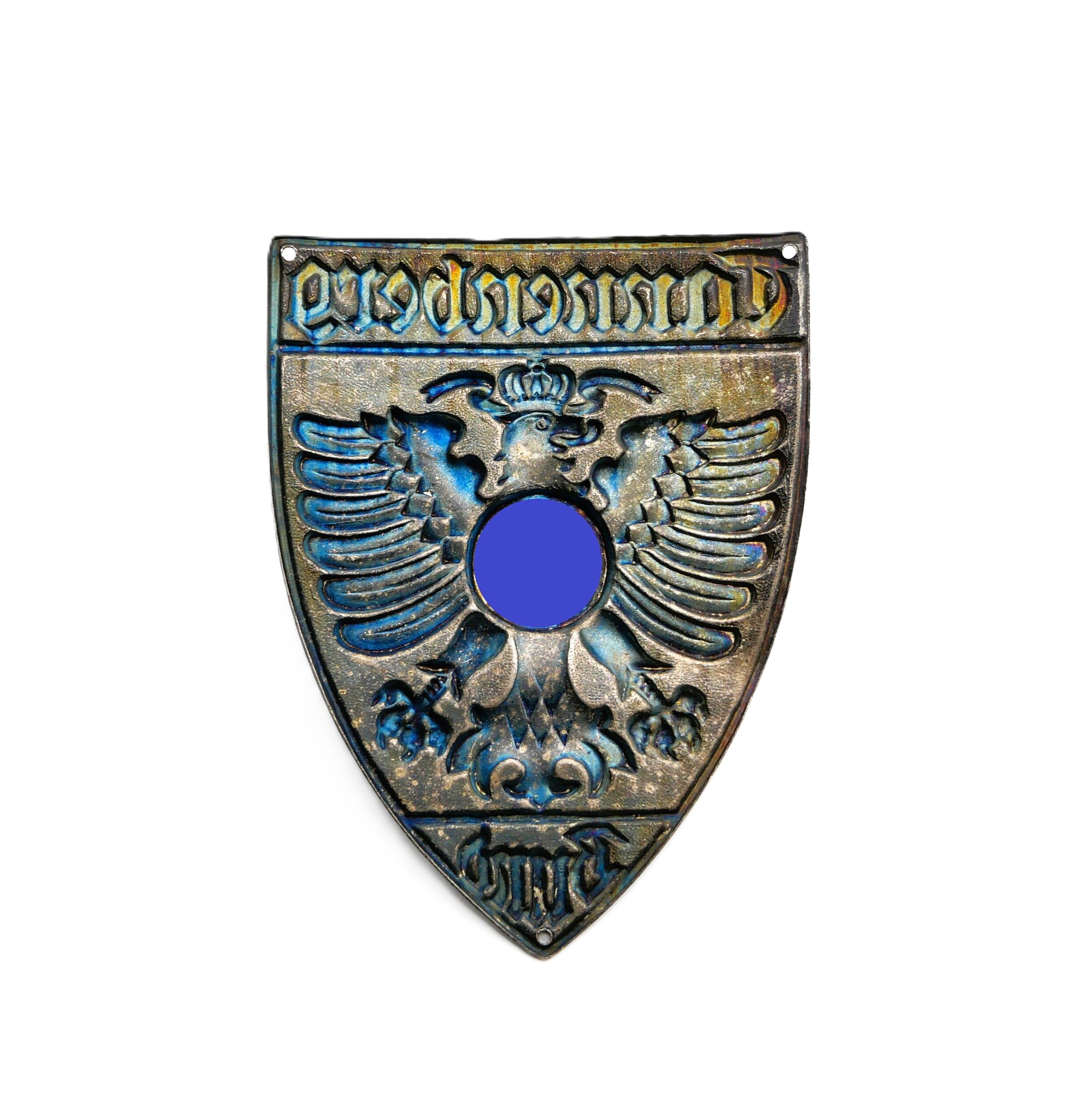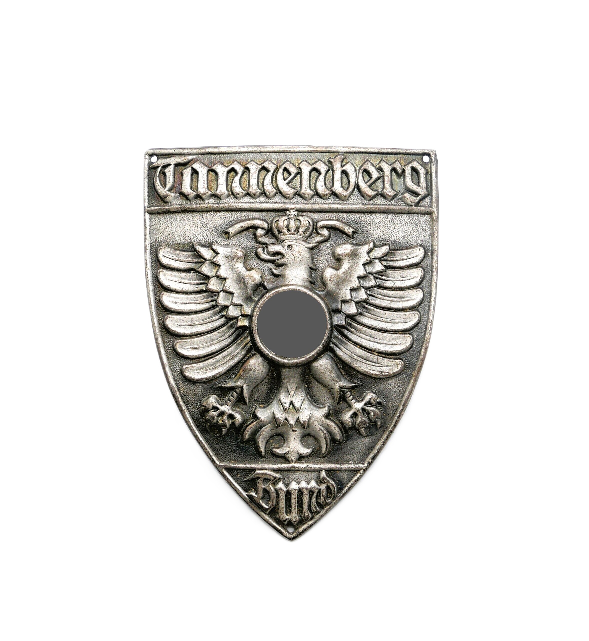 Ärmelschild Tannenberg. Mit drei Löchern zum Aufnähen. Masse 8 cm x 6 cm. Wurde wohl nie getragen.