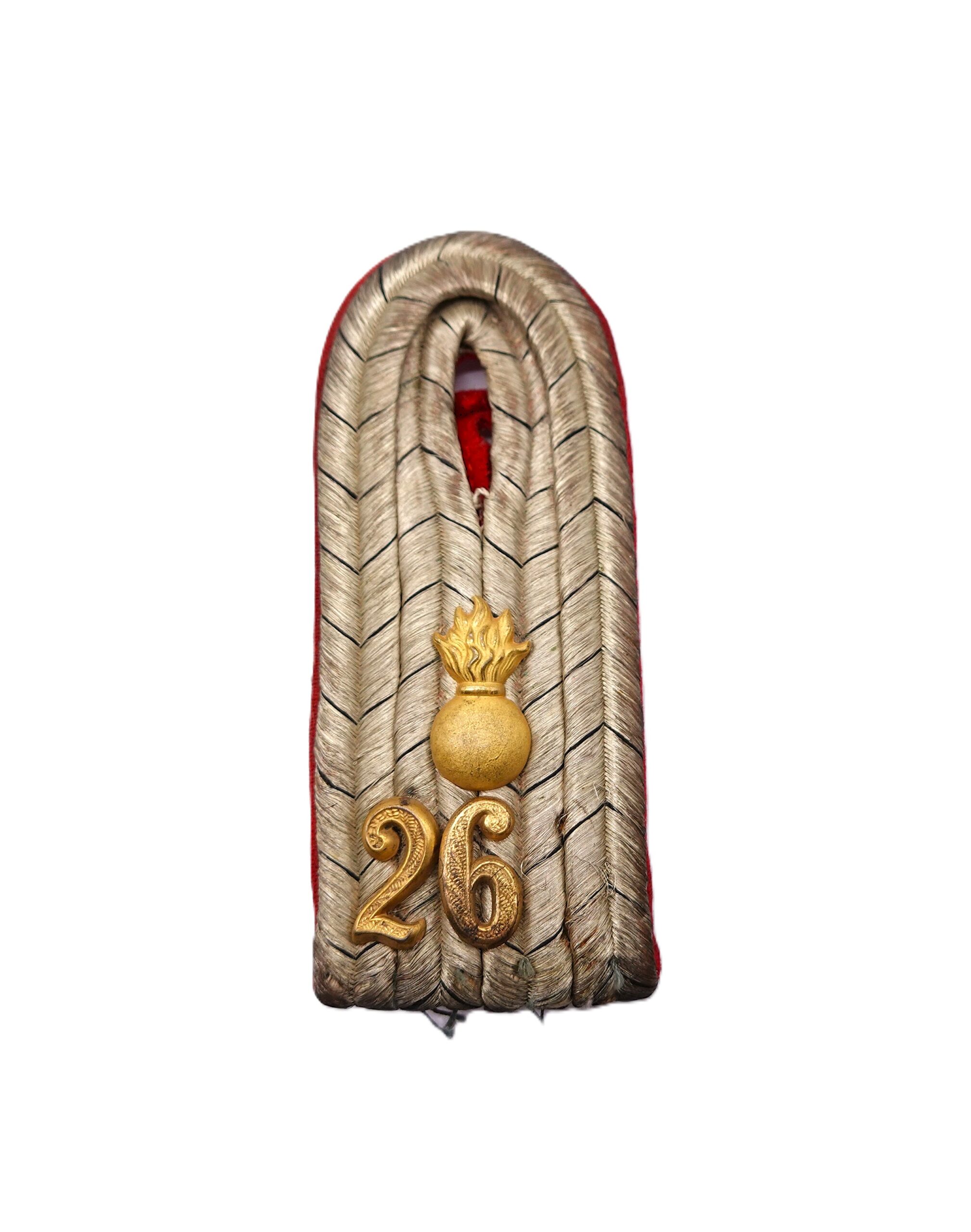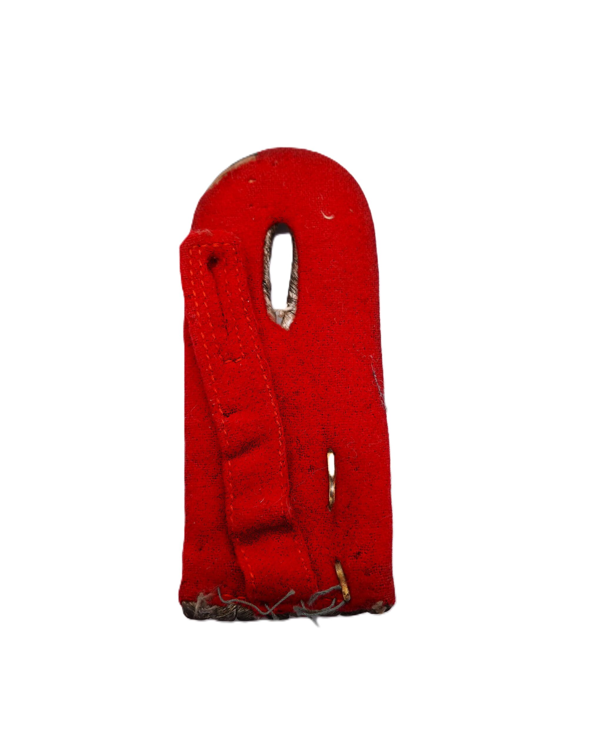 Schulterklappen zum Einnähen. Feldartillerie Regiment, Waffenfarbe rot. Eine Zahl fehlt. Für einen Leutnant. Getragener Zustand.