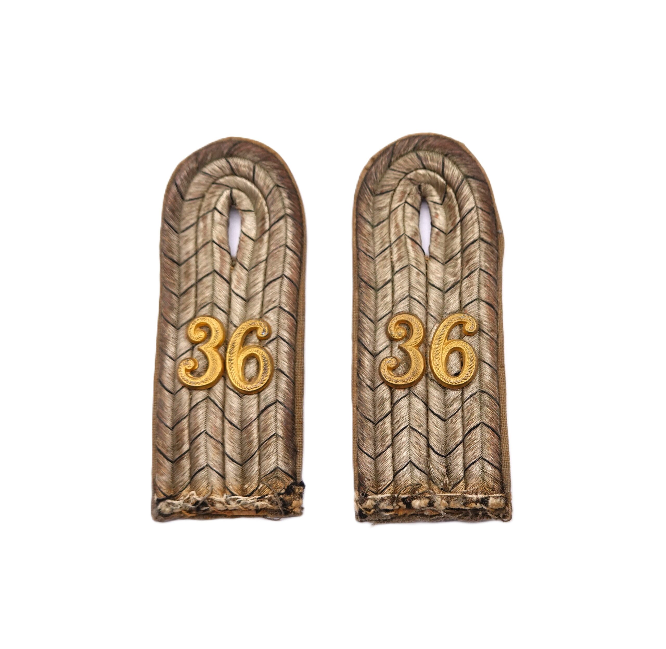 Schulterklappen zum Einnähen. Infanterie Regiment (I. R.) 36. Für einen Leutnant. Getragener Zustand.