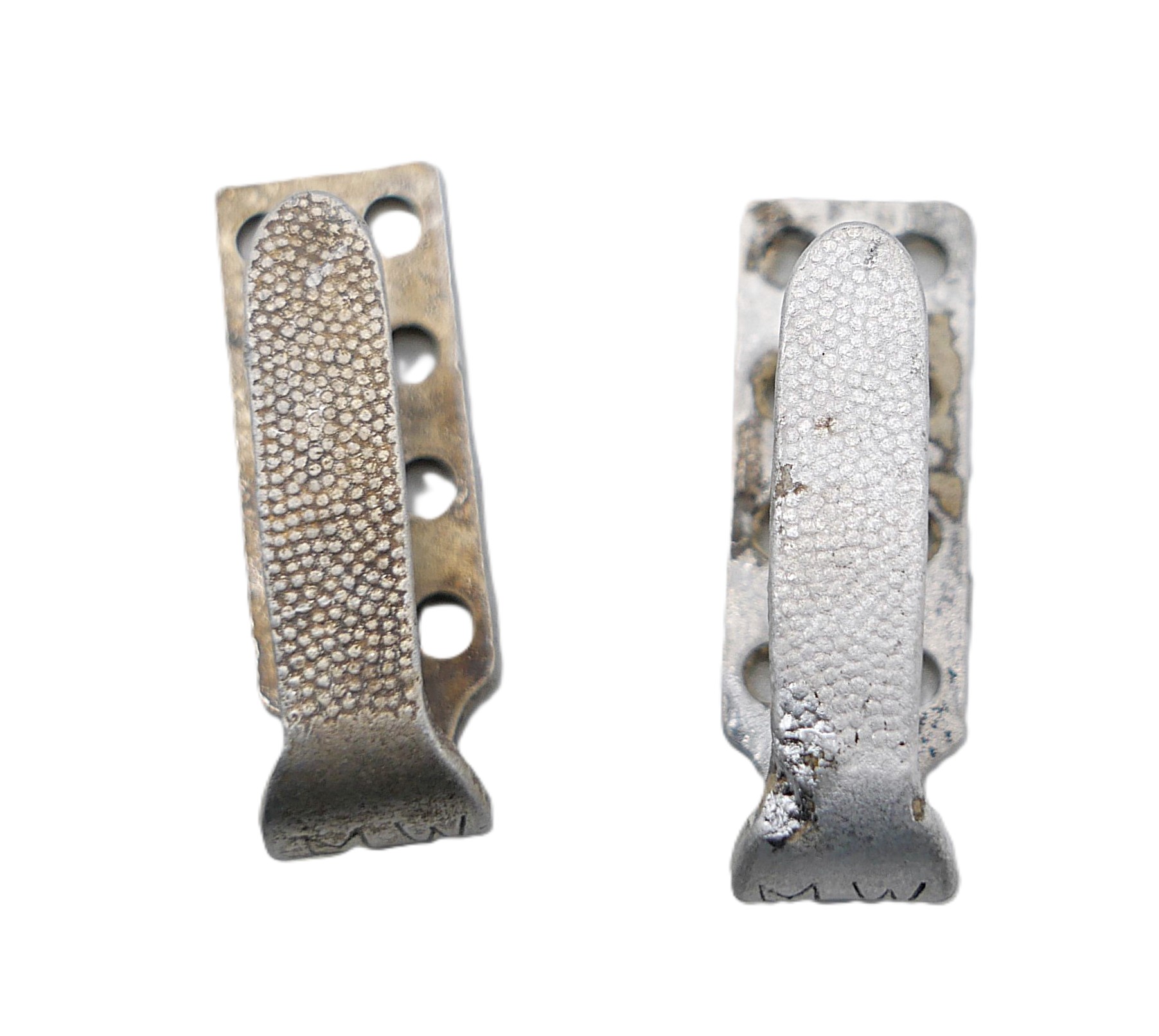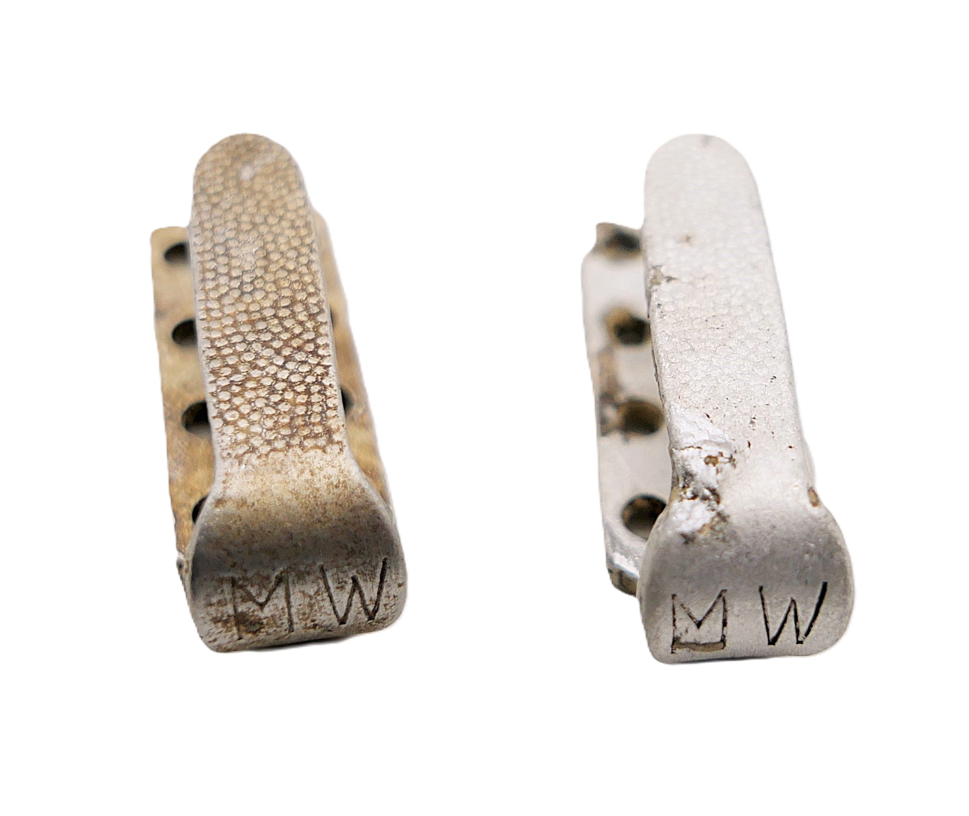 2 Koppeltragehaken – Koppelhaken – Haken. Hersteller MW. Aus Aluminium. Getragener Zustand.