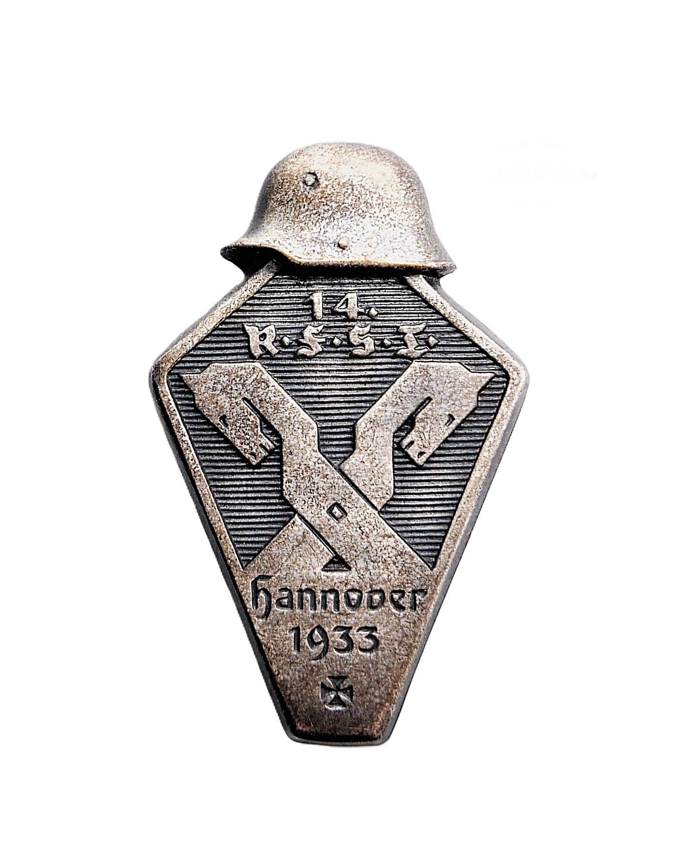Tagungsabzeichen – Stahlhelmbund – 14. R.F.S.T. ( Reichsfrontsoldatentag ) Hannover 1933. Getragener Zustand.