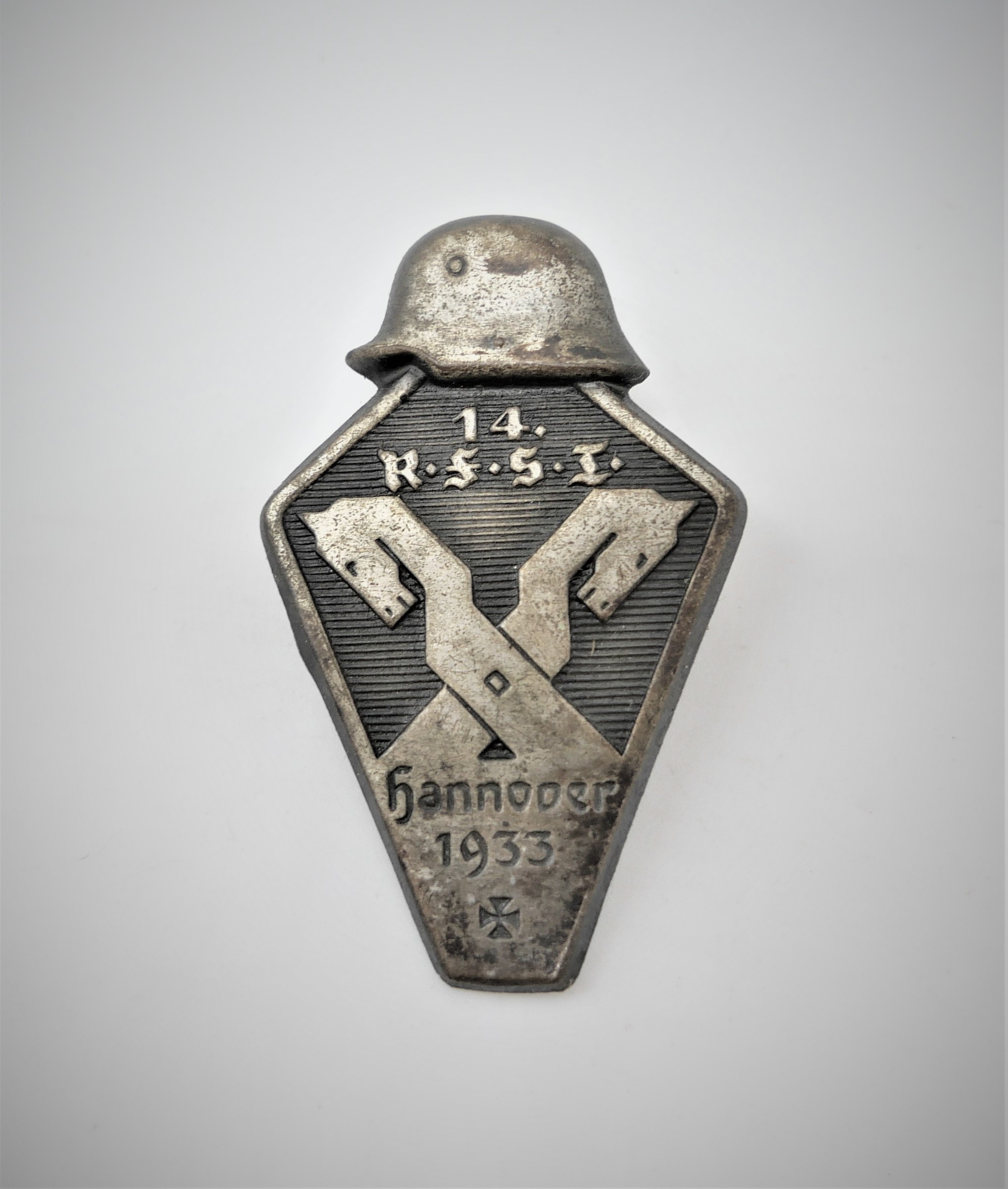 Tagungsabzeichen – Stahlhelmbund – 14. R.F.S.T. (Reichsfrontsoldatentag). Hannover 1933. Hersteller Lameyer, Hannover. Getragener Zustand.
