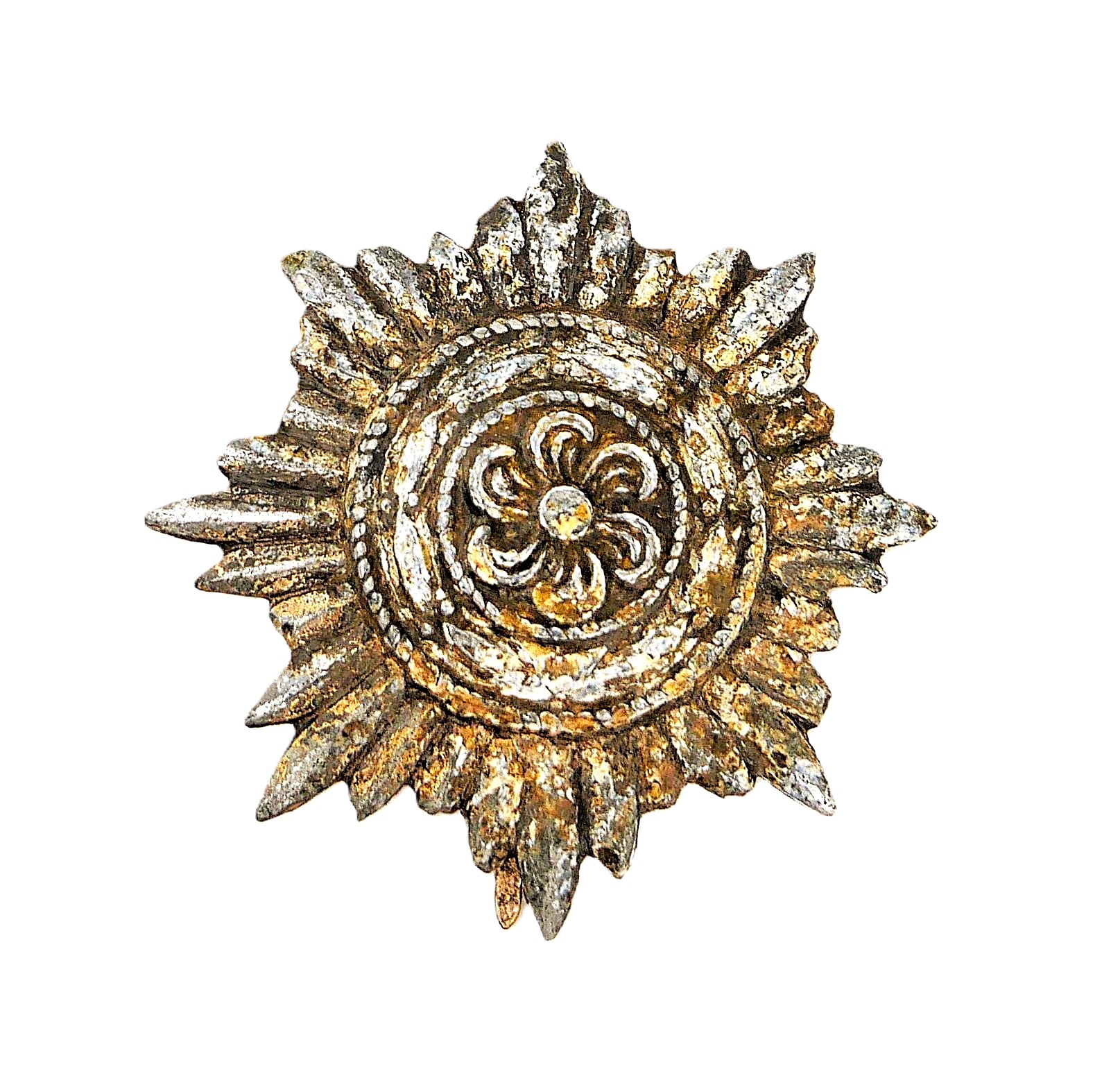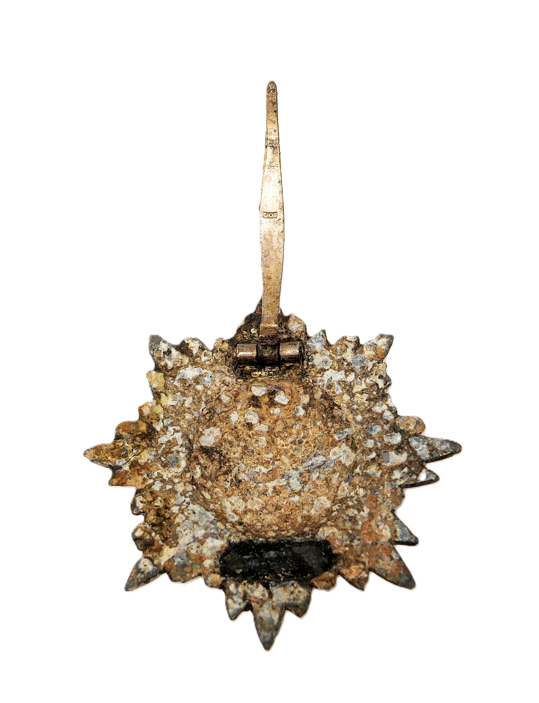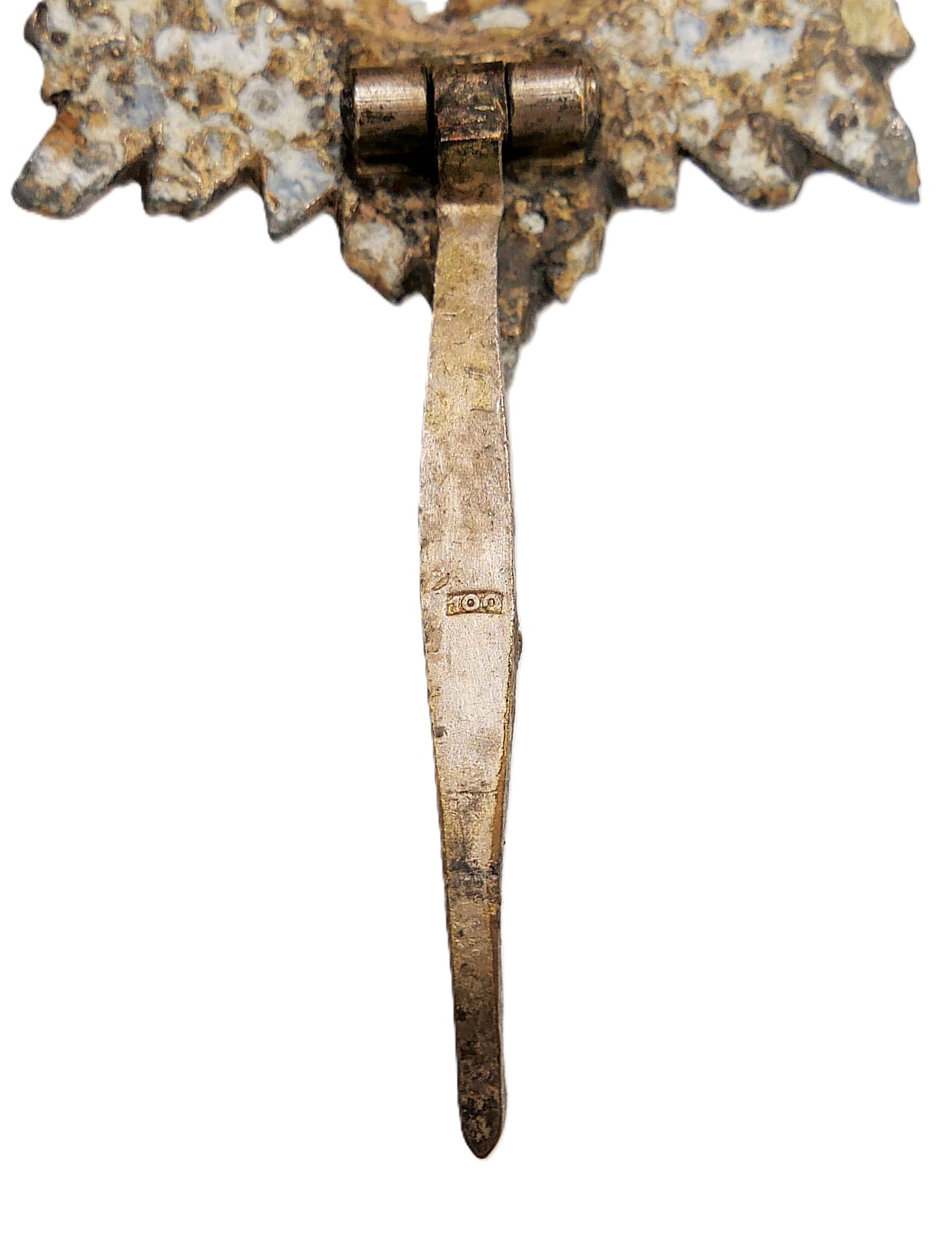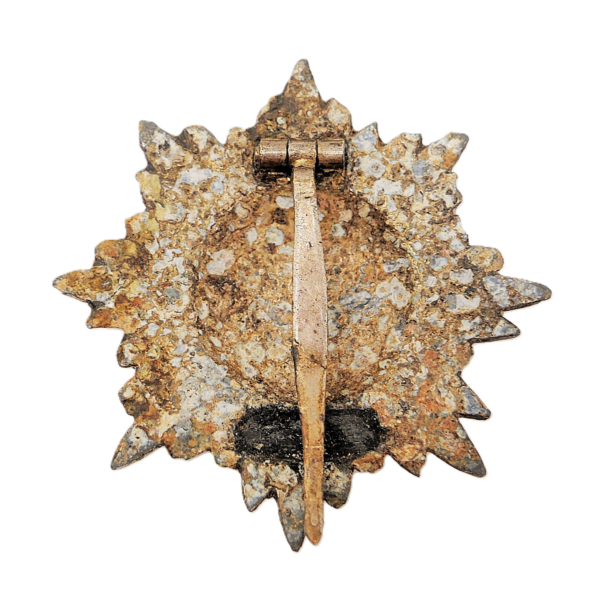 Tapferkeitsauszeichnung für Ostvölker 1. Klasse. Silber ohne Schwerter. Hersteller 100 (Wächtler & Lange, Mittweida). Auf der Nadelinnenseite gepunzt. Gut erhaltener Bodenfund. Nadelhaken fehlt.