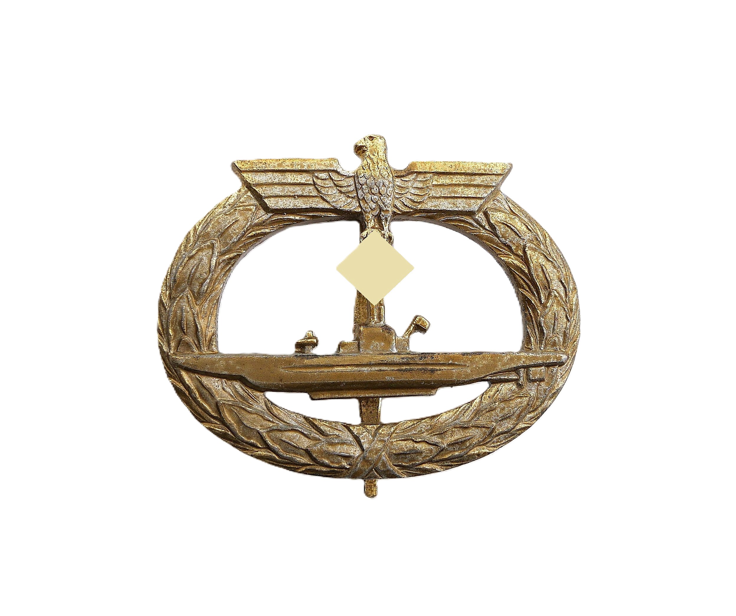 Ubootkriegsabzeichen. Ohne Hersteller. Zinkstück mit etwas Restvergoldung. Schöner getragener Zustand.