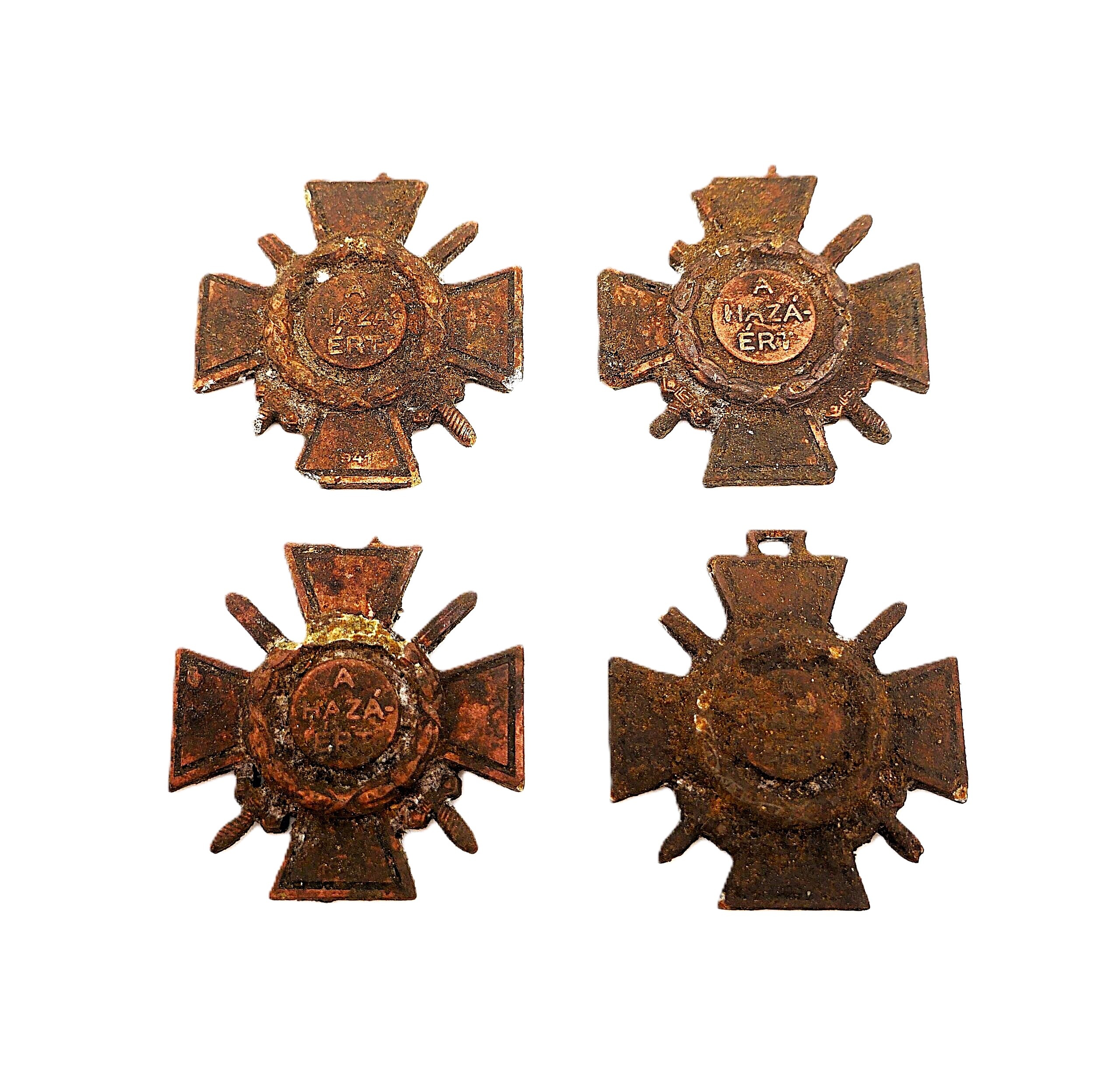 Ungarn – 4 x Feuerkreuz für Frontkämpfer mit Schwertern 1941 – Tűzkereszt – Bodenfund.