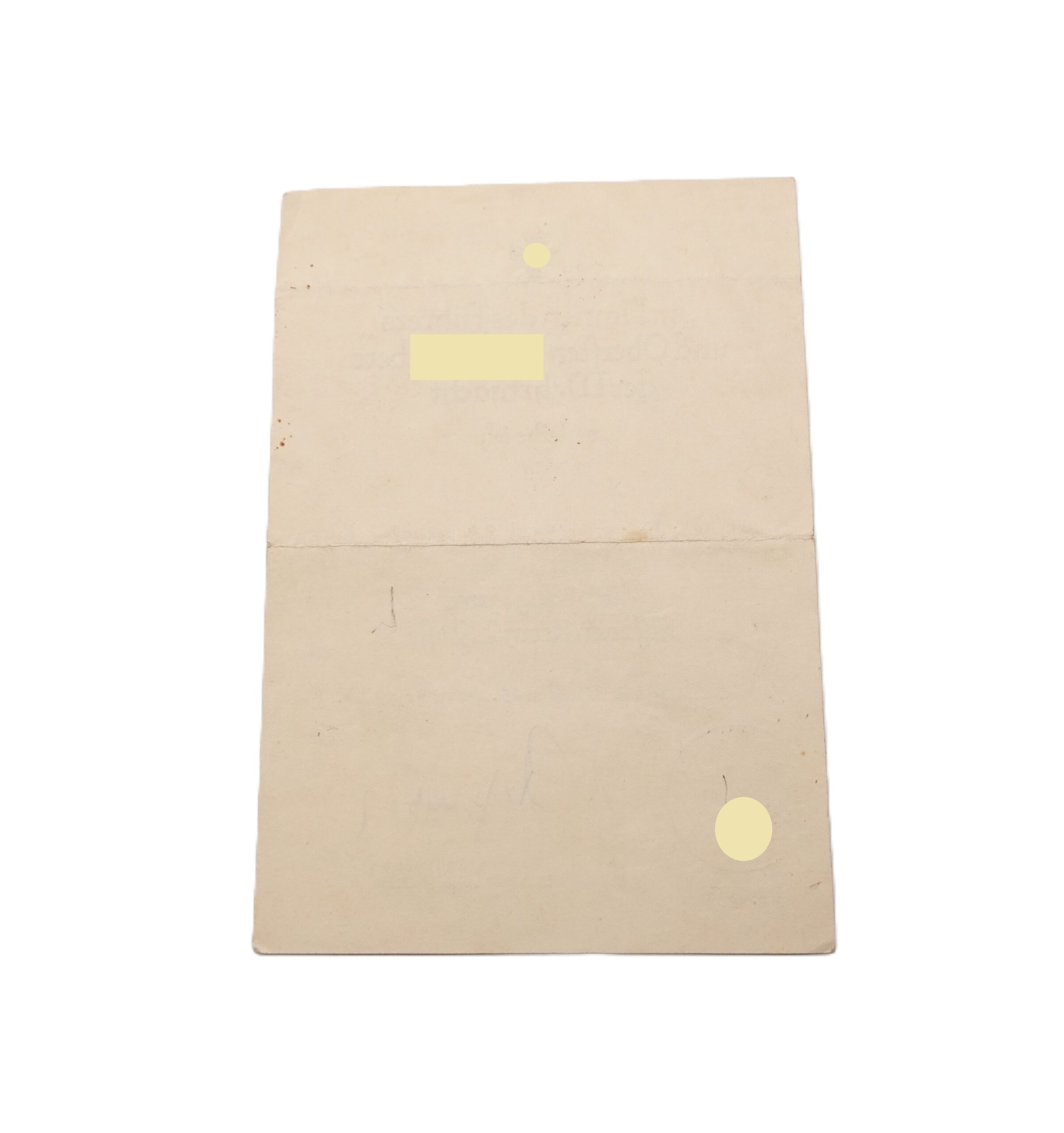 – Mit dabei eine Urkunde zur Medaille Winterschlacht im Osten. Ausgestellt am 6. August 1942. Urkunde wurde gelocht und einmal gefaltet.