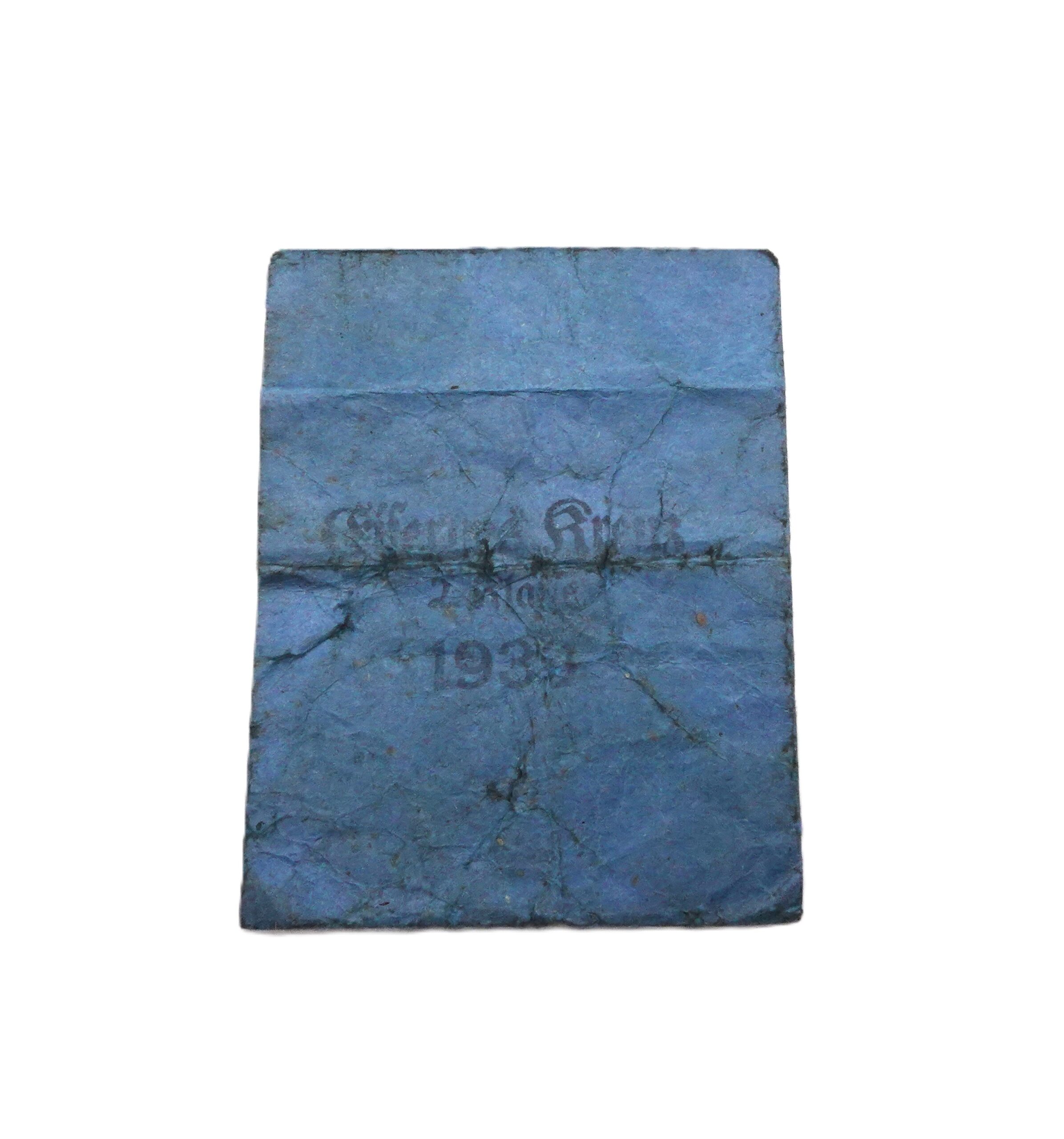 Verleihungstüte zum Eisernen Kreuz 2. Klasse 1939. Rückseitig aufgedruckt ist der Hersteller Ernst L. Müller, Pforzheim. Tüte auf der Vorderseite etwas berieben mit kleineren Beschädigungen.
