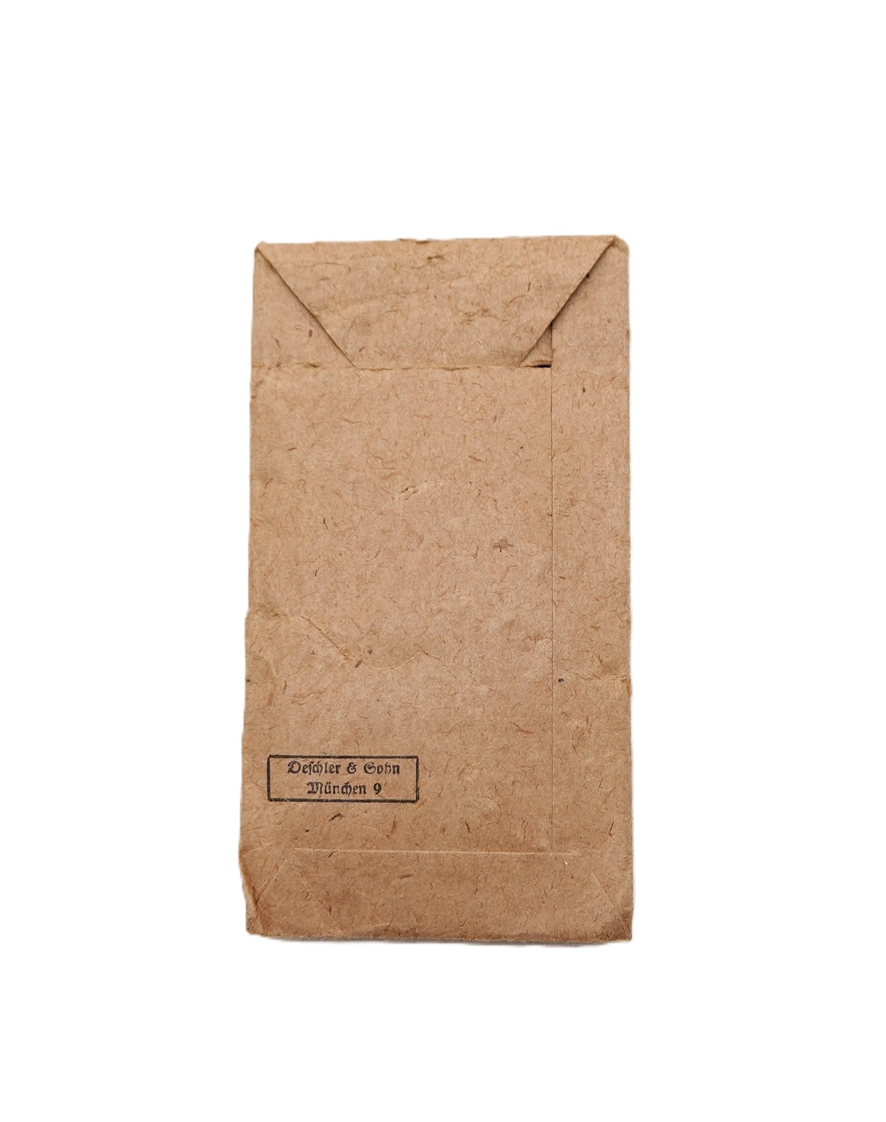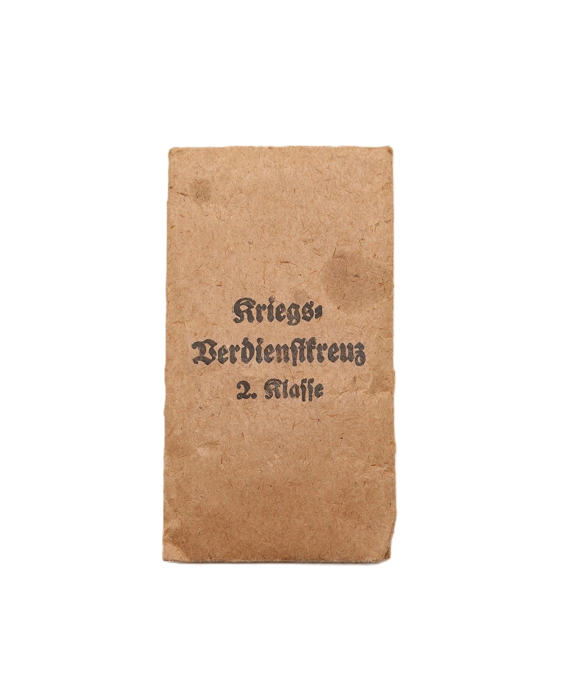 Verleihungstüte zum Kriegsverdienstkreuz 2. Klasse. Hersteller Deschler § Sohn, München 9. Hat einen Fleck. Ansonsten befindet sich die Tüte in einen schönen Erhaltungszustand.
