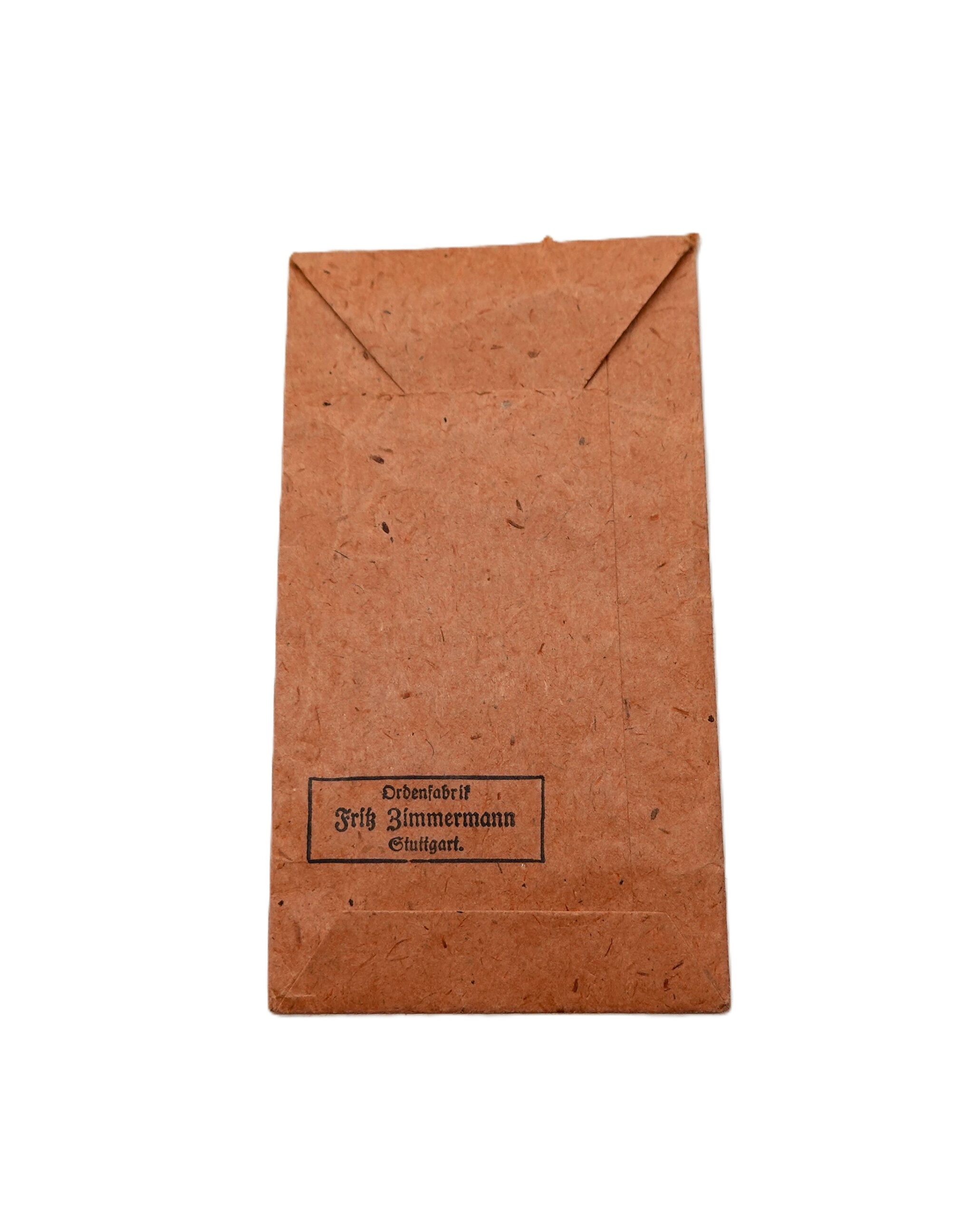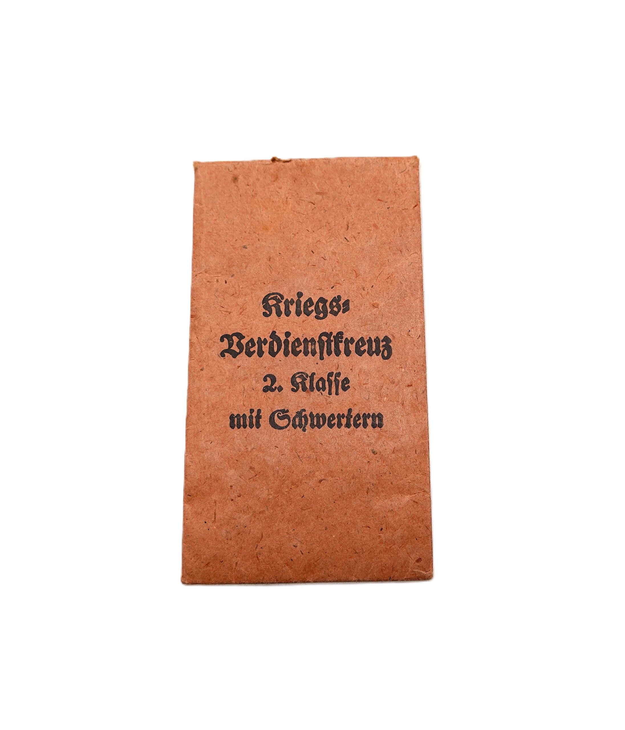 Verleihungstüte zum Kriegsverdienstkreuz 2. Klasse mit Schwerter. Hersteller 6 (Ordenfabrik Fritz Zimmermann, Stuttgart). Schöne Erhaltung.