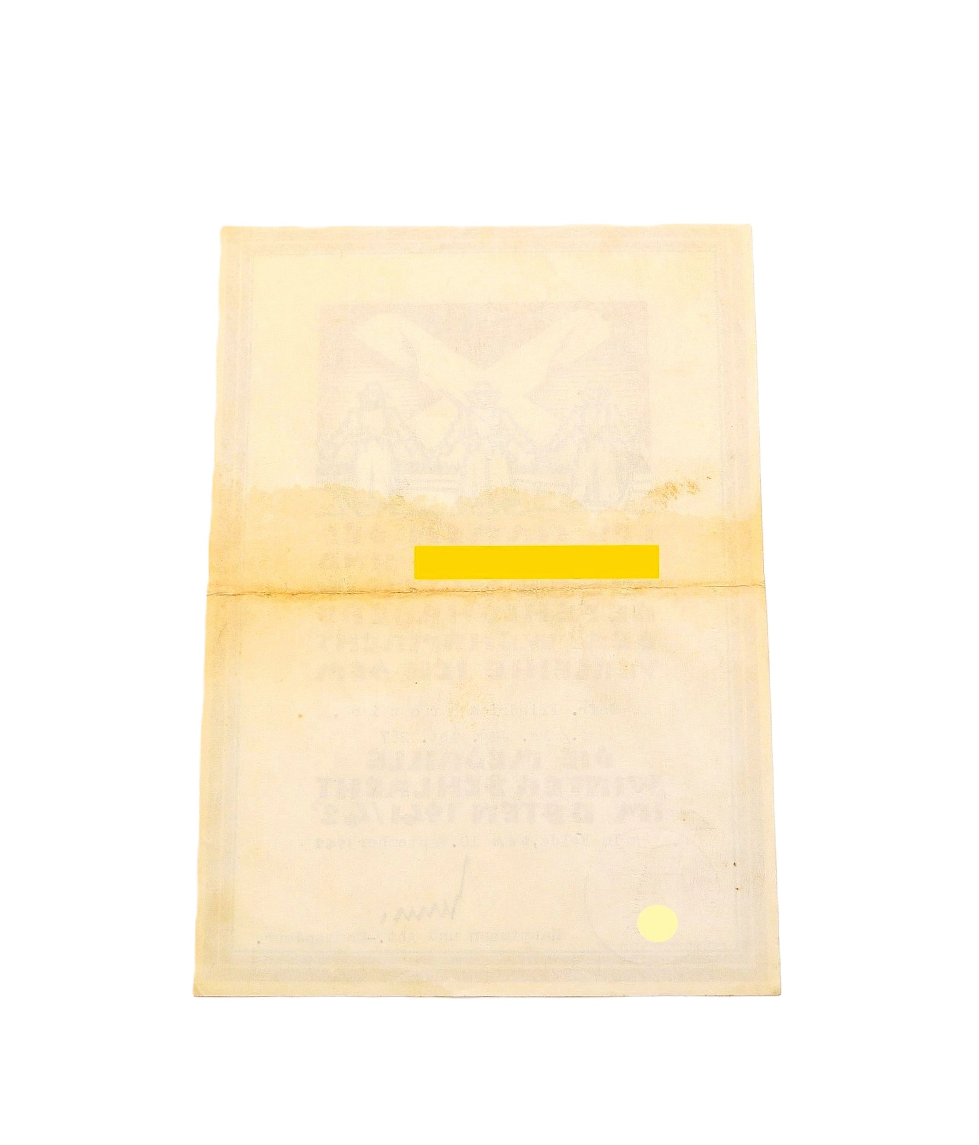Ausgestellt im Felde am 10. September 1942. Urkunde ist etwas zerknittert und einmal gefaltet. Mittig ein Fleck, da ist sie wohl mal etwas nass geworden.