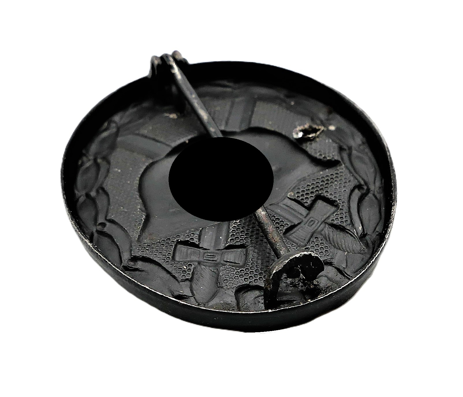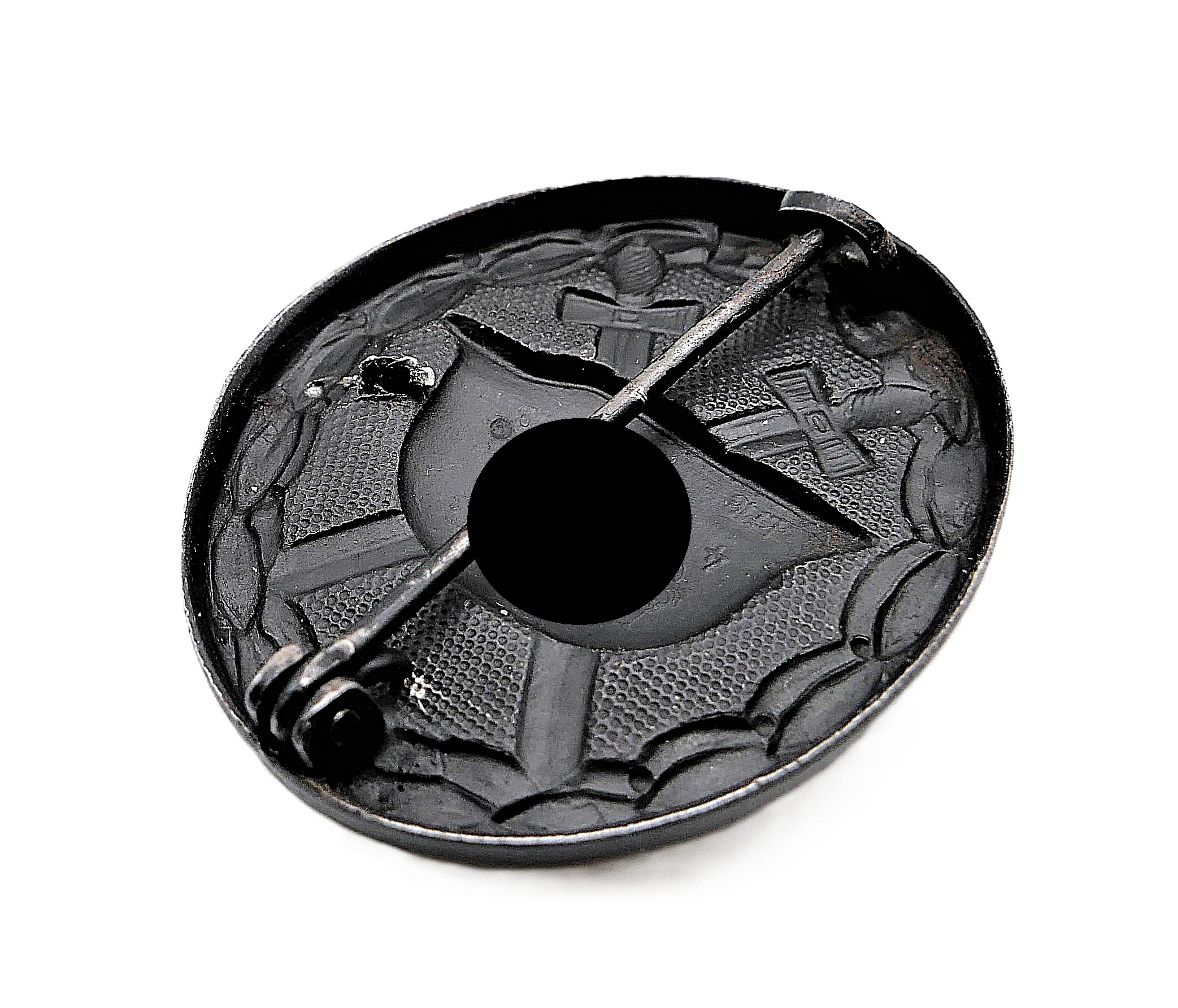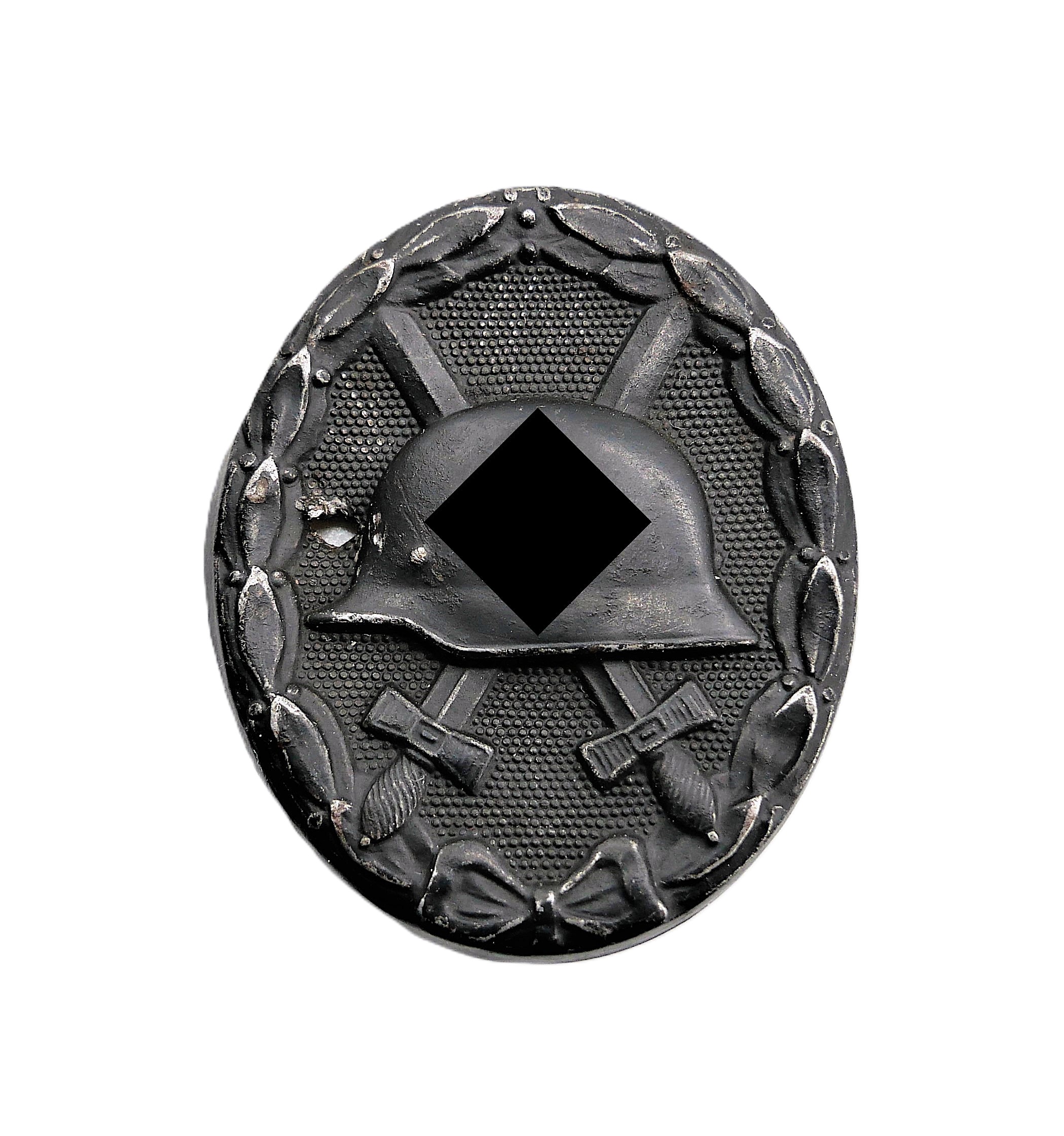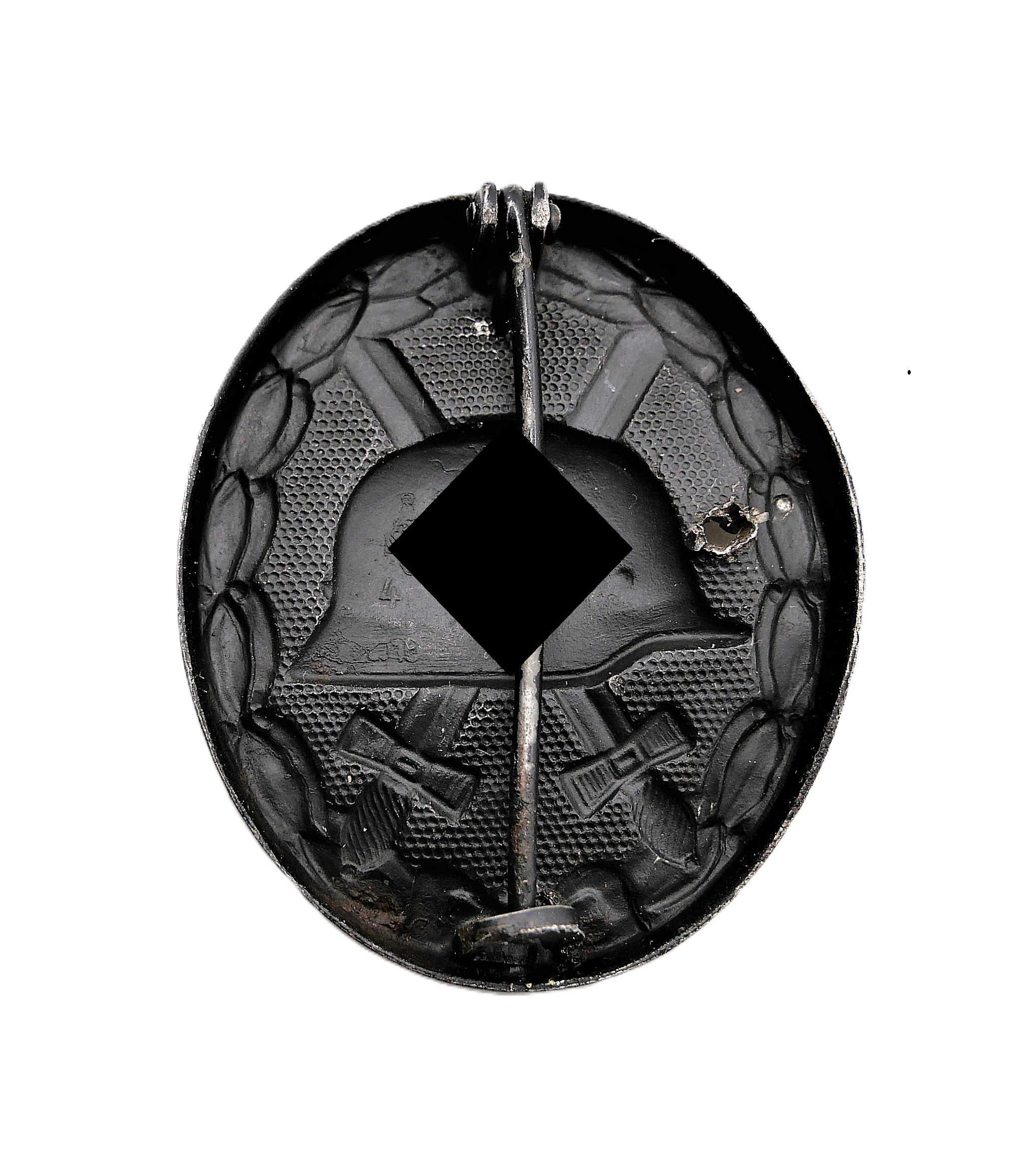 Verwundetenabzeichen Schwarz 1939. Rückseitig mit Doppelmarkierung 4 und L/16 des Herstellers Steinhauer & Lück, Lüdenscheid. Magnetisch. Hat eine Beschädigung abbekommen. Getragener Zustand. HK mit 70 % Farbe.