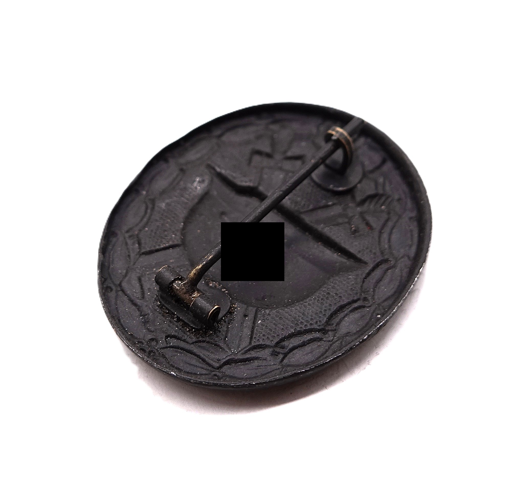 Verwundetenabzeichen Schwarz. Deschler/Wiedmann Design. Nicht magnetisch. Getragener Zustand. Erhabenen Stellen sind berieben. Wurde wohl mal nachlackiert.