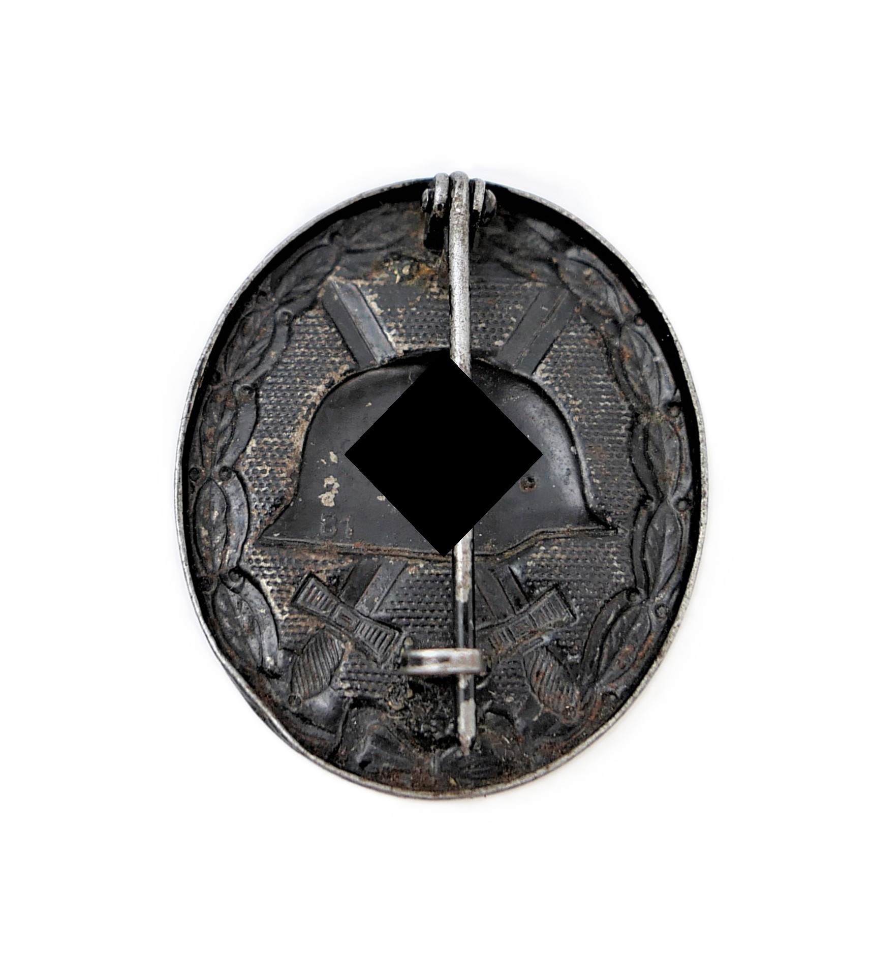 Verwundetenabzeichen Schwarz – Hersteller 81 (Overhoff & Cie Lüdenscheid). Magnetisch. Getragener Zustand mit Abrieb. HK ohne Farbe.