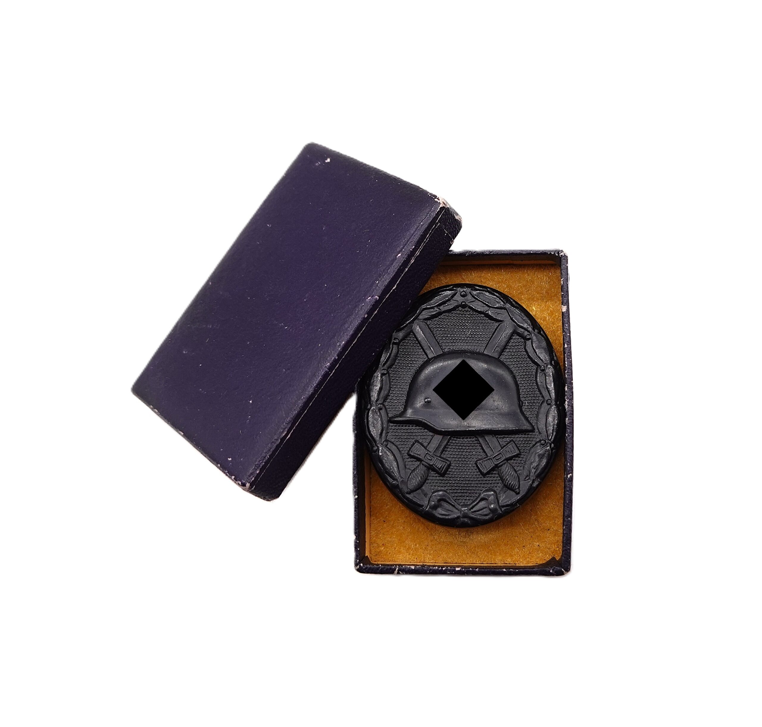 Verwundetenabzeichen Schwarz. Hersteller L/53 (Hymmen & Co, Lüdenscheid). Magnetisch. Im blauen LDO Verleihungsetui. Wenig getragener Zustand.