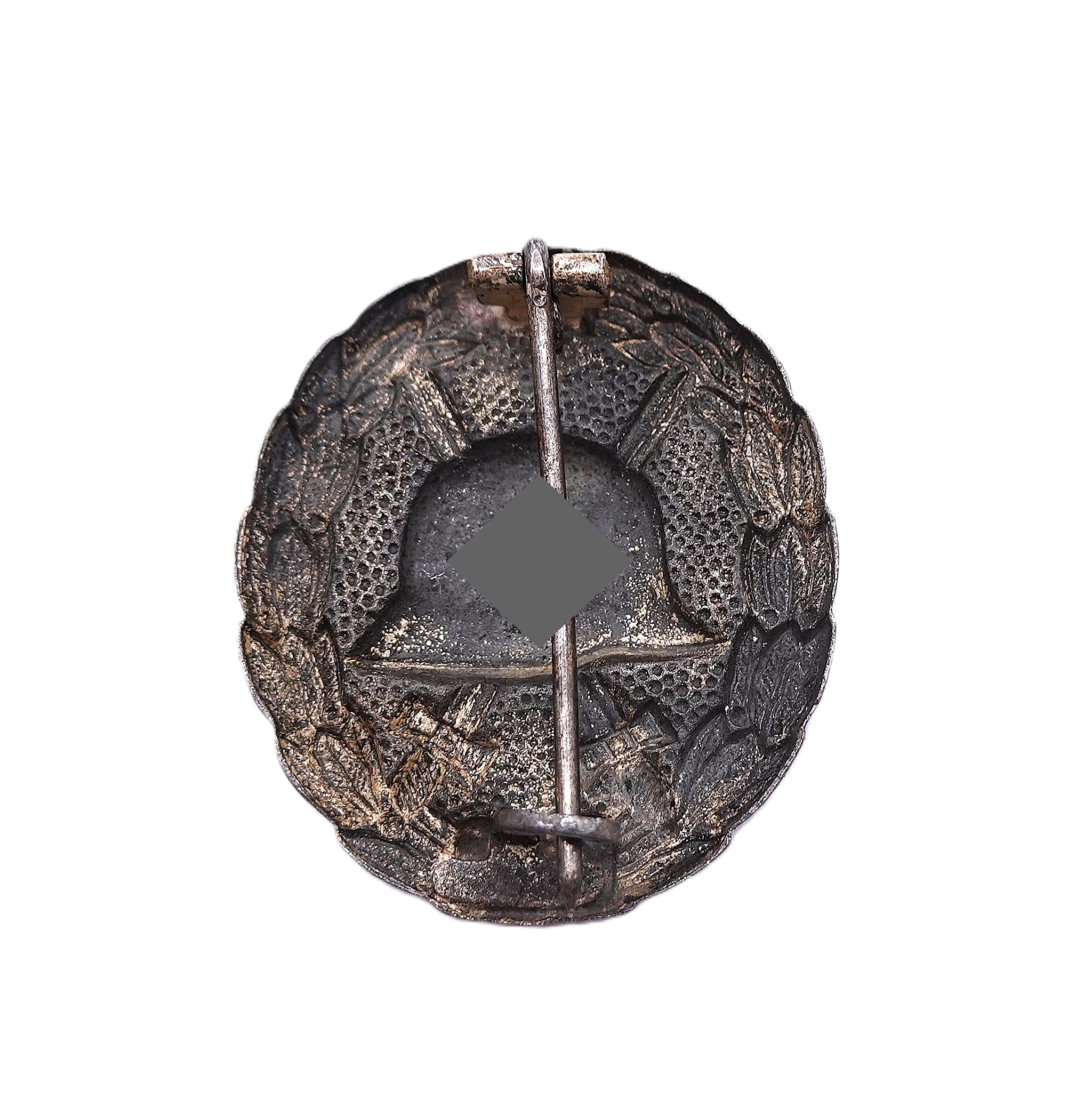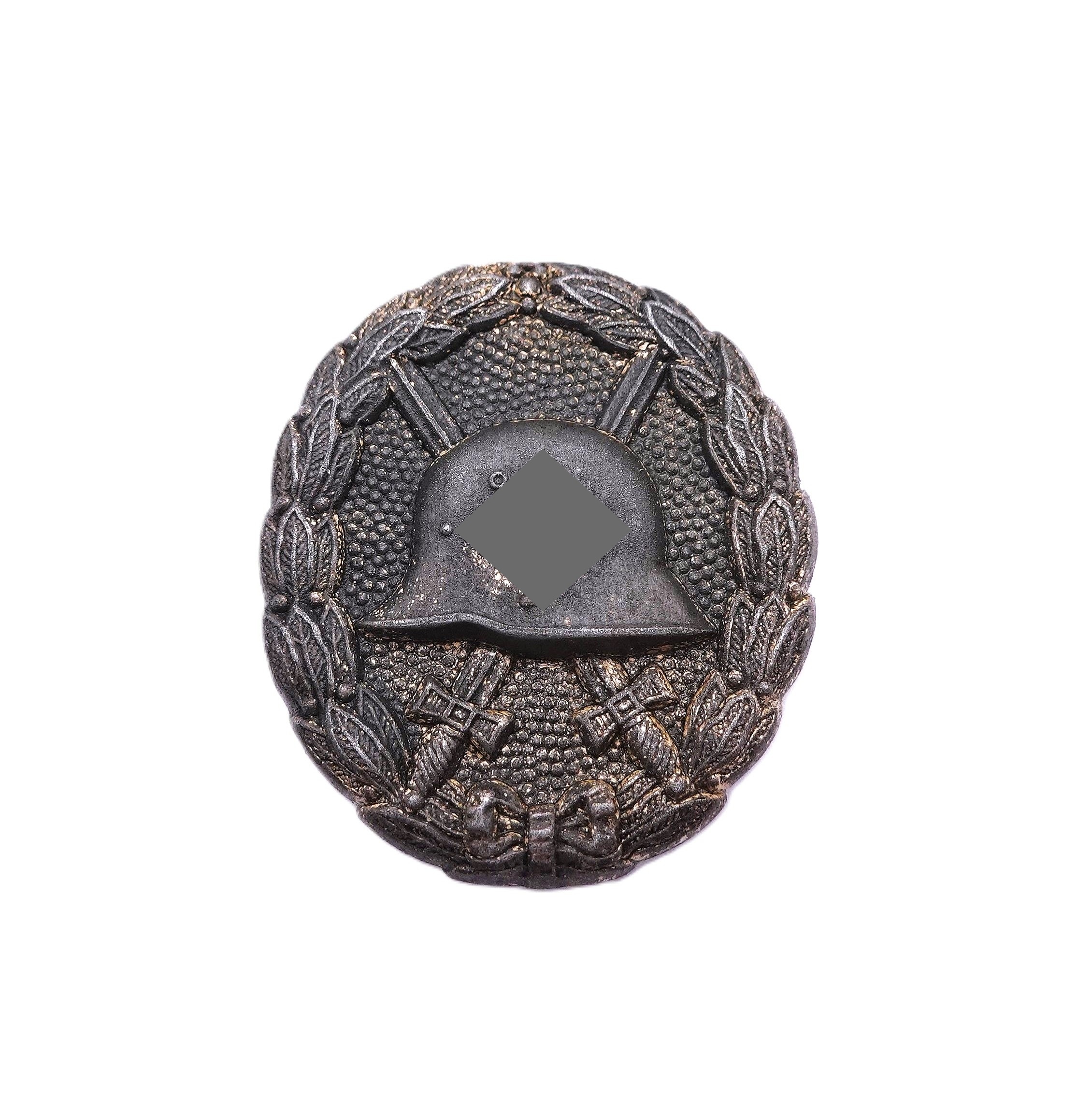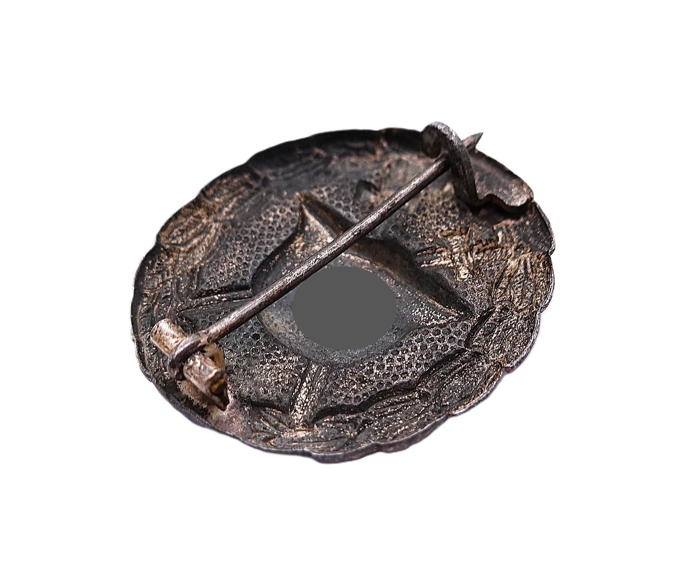 Verwundetenabzeichen Silber. 1. Form. Hersteller GWL (Gebrüder Wegerhoff, Lüdenscheid). Getragener Zustand mit vergangener Versilberung.