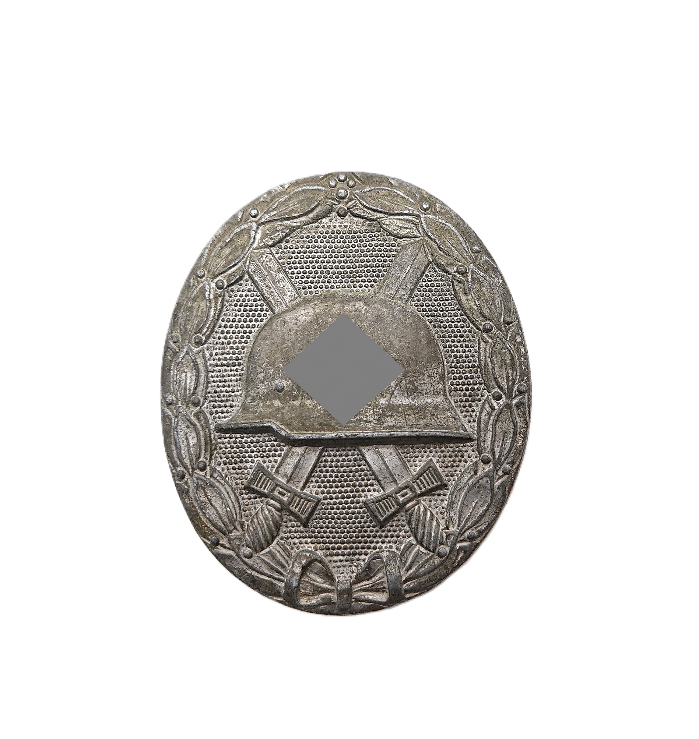 Verwundetenabzeichen Silber – Hersteller L/10 (Deschler & Sohn, München). Eins der seltensten VWA`s überhaupt. Es sind nur eine Handvoll Exemplare bekannt. Ausführung in Zink. Getragener Zustand.