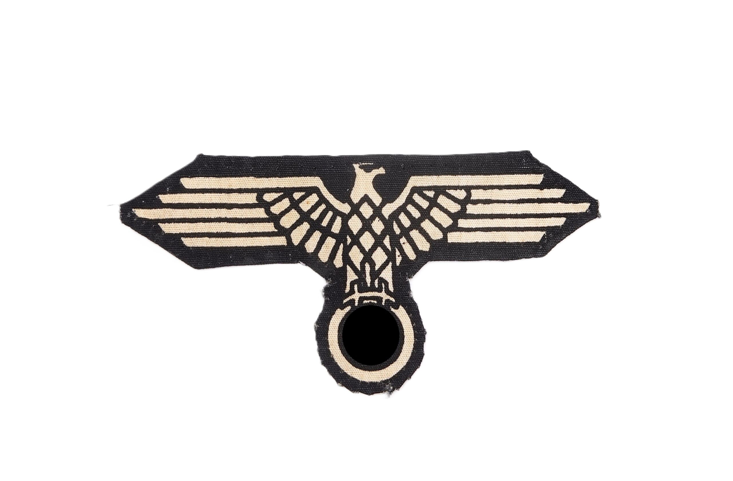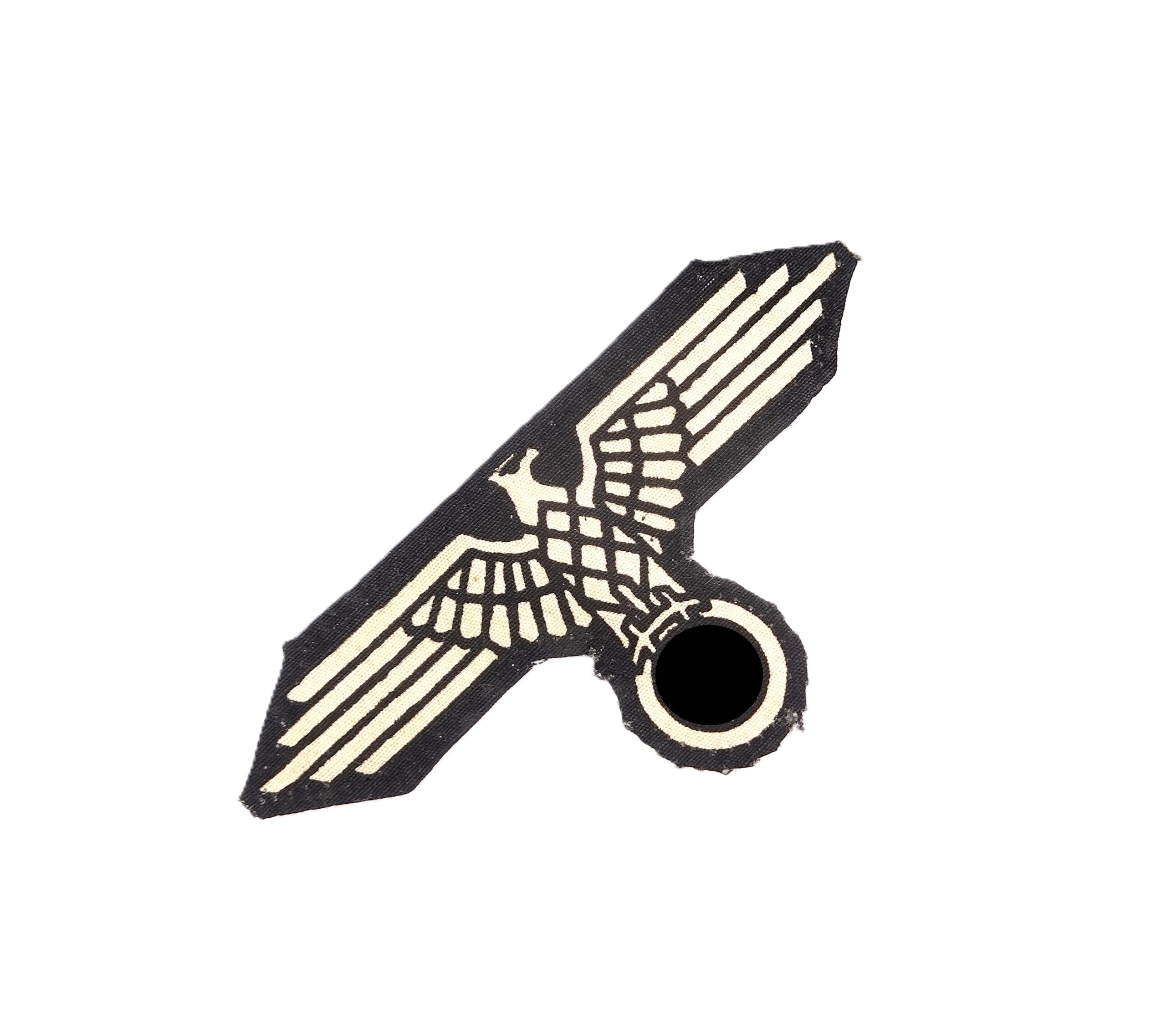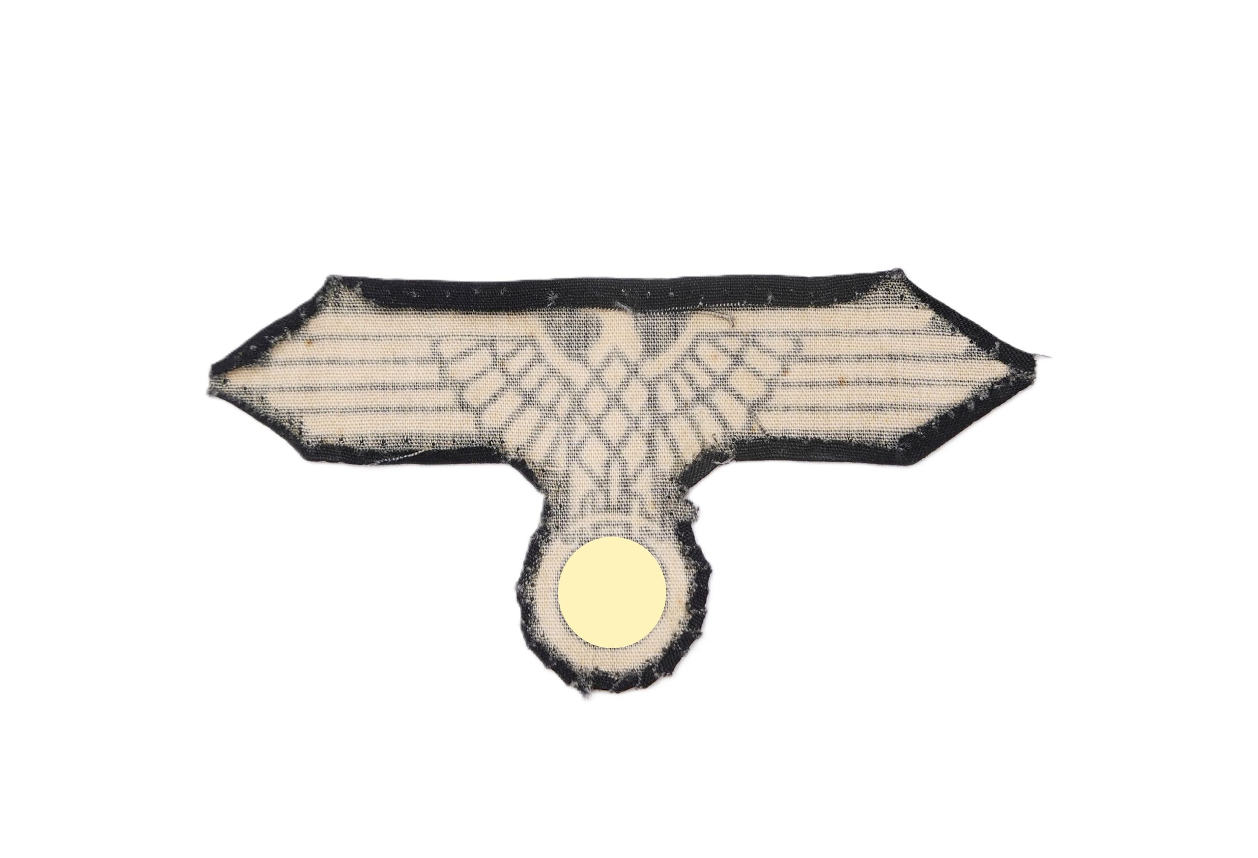 Waffen SS Ärmeladler für Mannschaften. Späte gedruckte Ausführung. Wurde von der Uniform abgetrennt. Getragener Zustand.