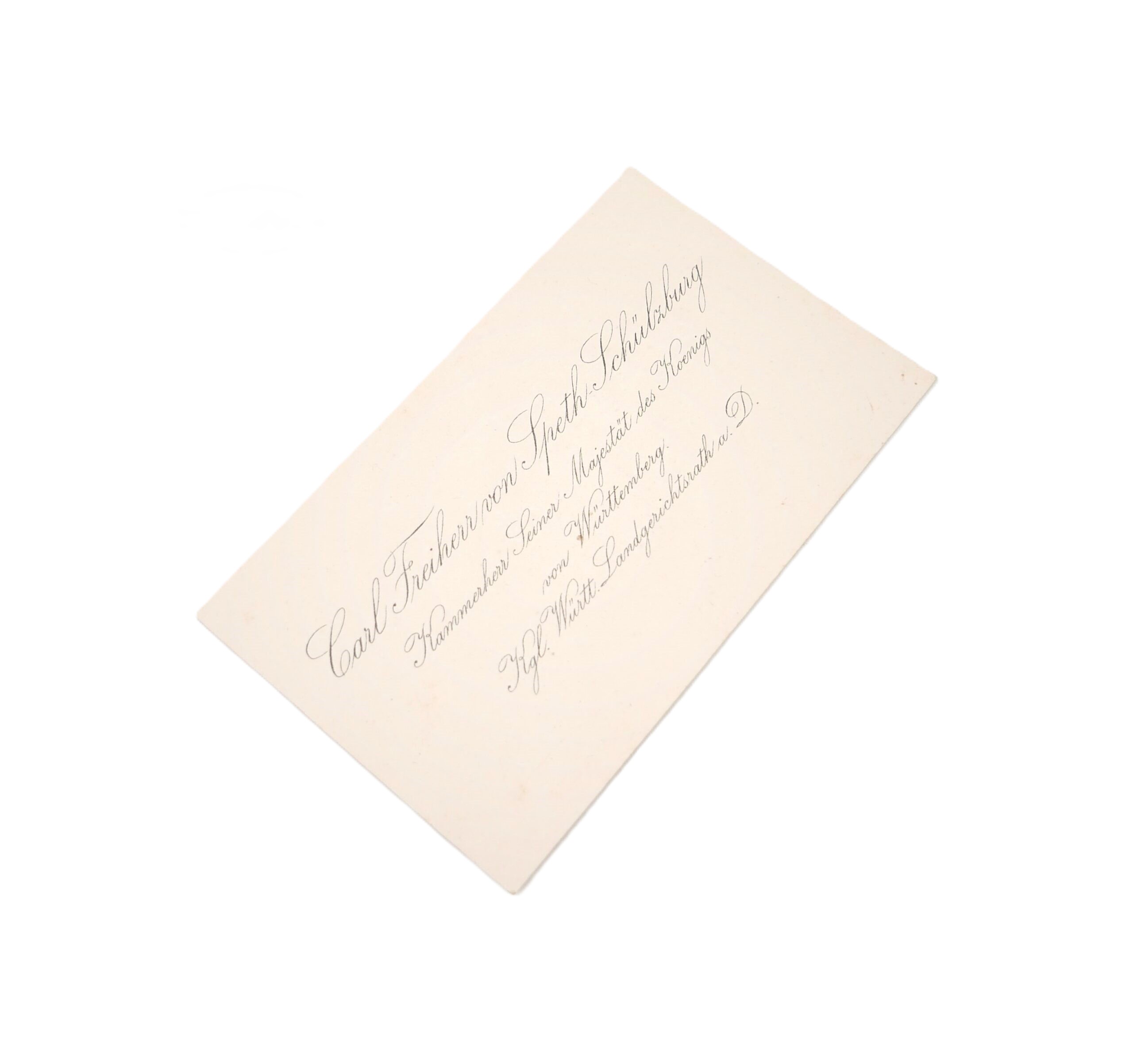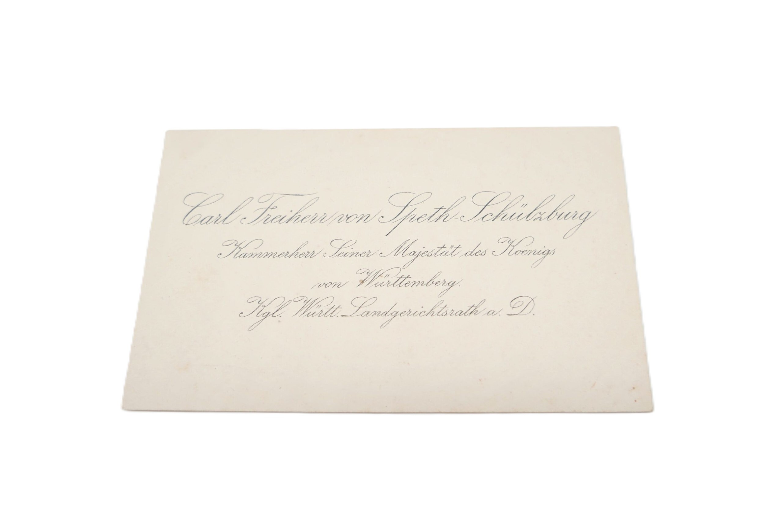 Württemberg – Visitenkarte des Carl Freiherr von Speth Schülzburg – Kgl. Württ. Landgerichtsrath a. D.