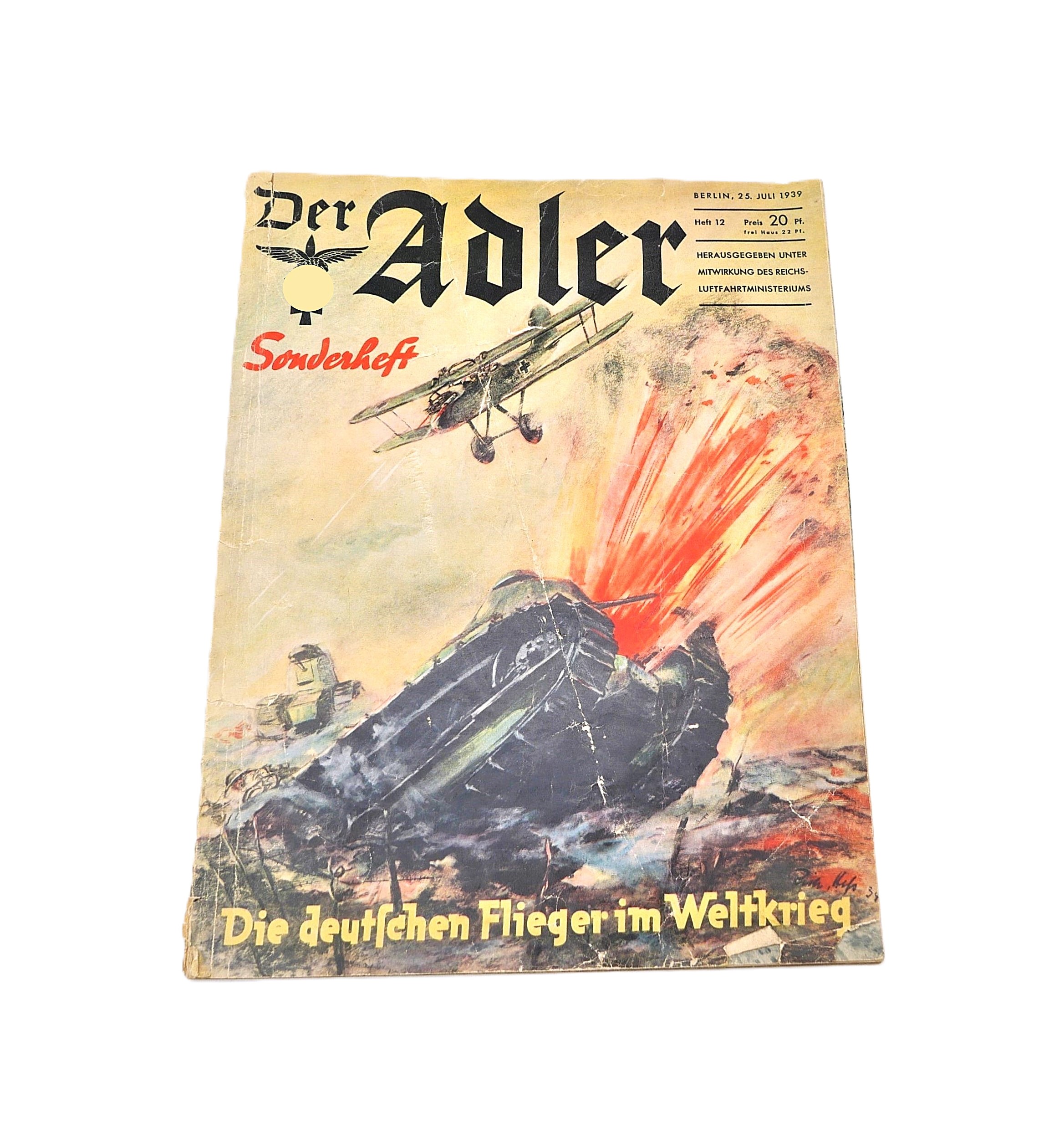 Zeitschrift – Der Adler – Heft 12. – SONDERHEFT – Berlin, 25. Juli 1939. Gebrauchter Zustand. Es wurden rückseitig ein paar Ecken rausgerissen.